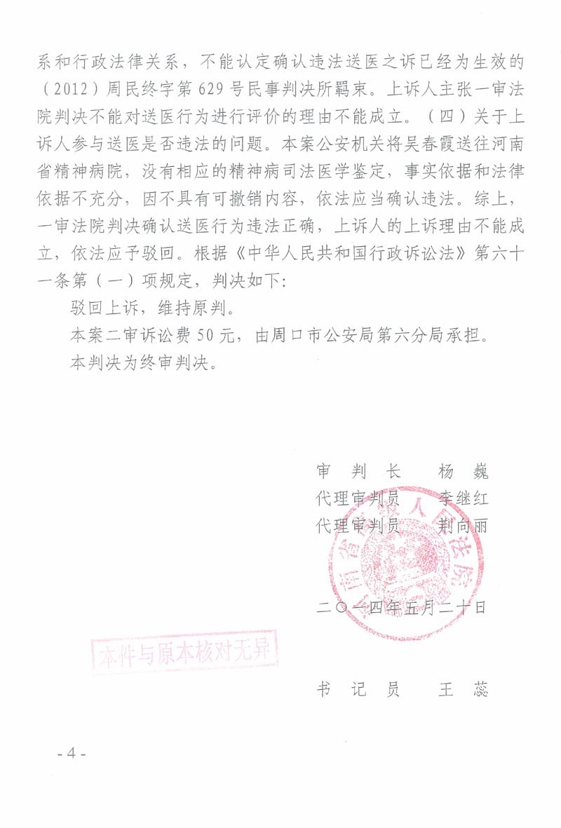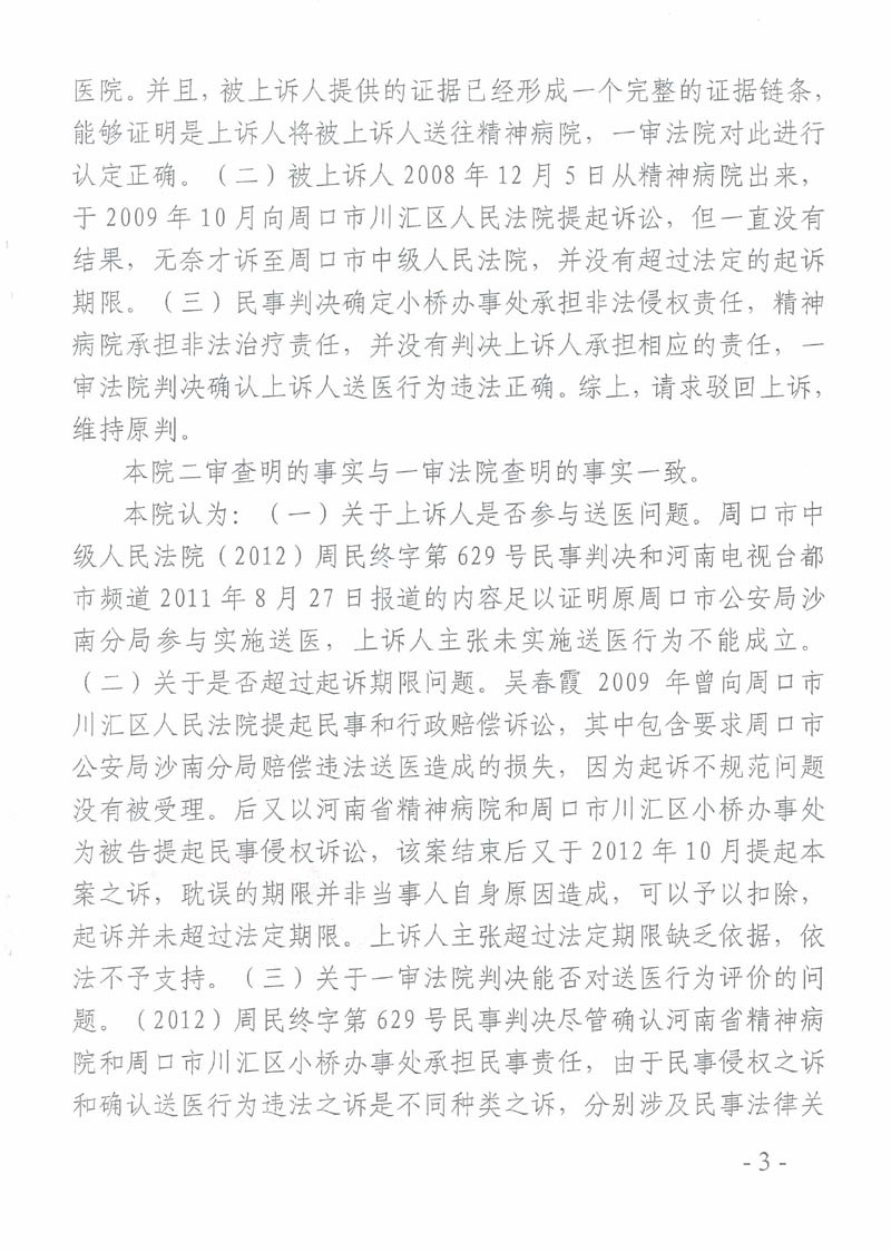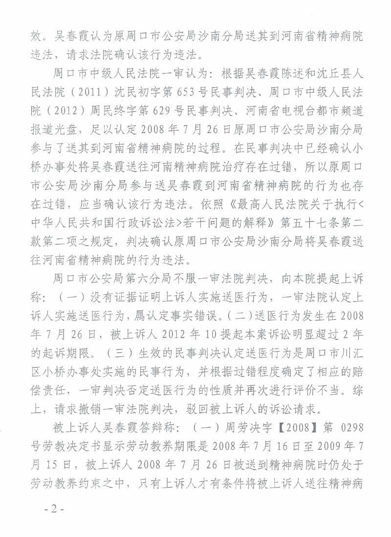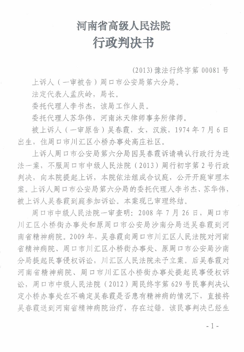 被精神病人吴春霞告官行政判决书