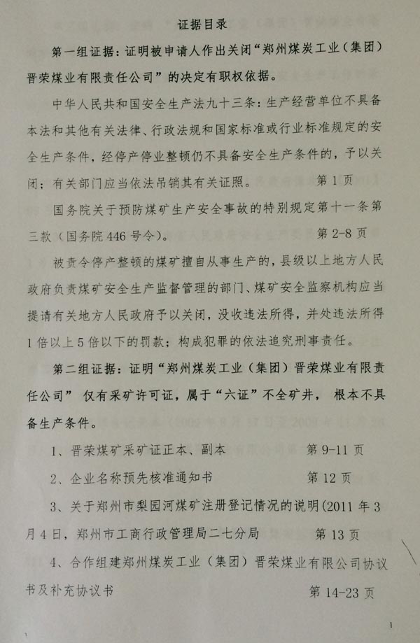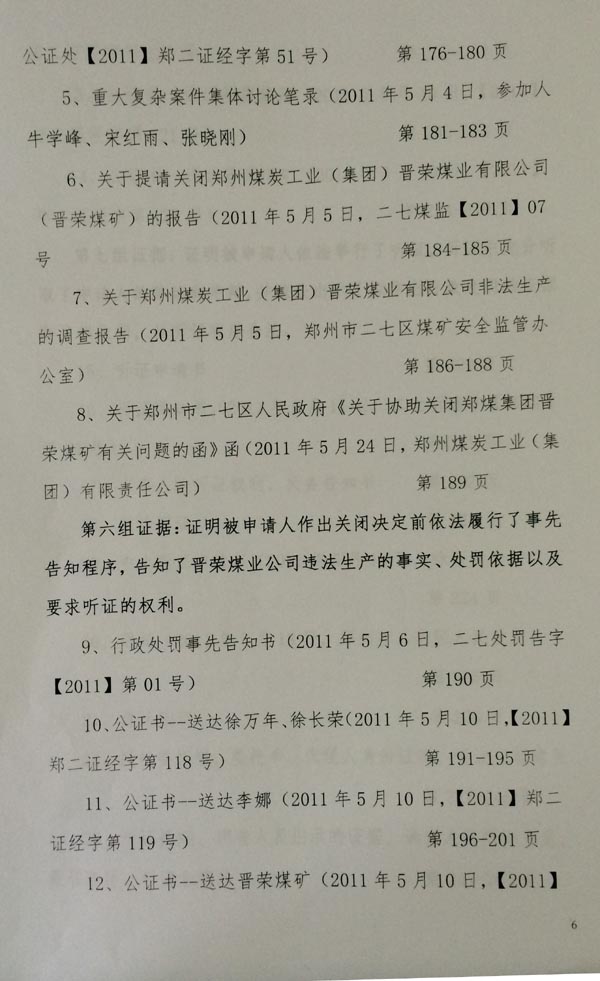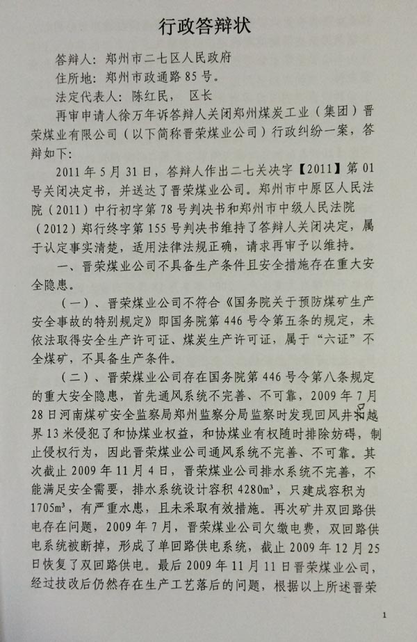 另外,徐万年代理人提出,晋荣煤矿在河南省国土资源厅获得了采矿权许可证后,在安委会没有验收合格批准投入生产的情况下,二七区政府谎称对晋荣煤矿做过停产停业的处罚,并要求二七区政府提供证据。