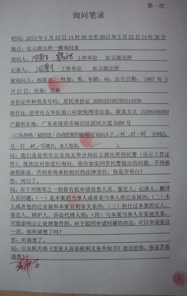 案子过了一个多月后,2013年6月27日被一直关押的6位人员的家属,接到了以“故意伤害罪”执行逮捕的通知书,至今已经5个多月了。现被关押人员的家属恳请中纪委监督、委托相关部门调查该事件中,红云派出所明显的不公正执法行为及滥用职权,偏袒有钱有势的人。被关押的6位民工家属有如下疑点恳请中纪委监督、委托相关部门调查取证: