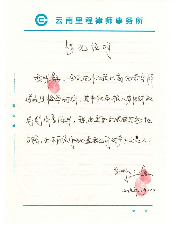 代理人蔺文财为了准确无误的申请陈军回避,特让吴英写出情况说明(见情况说明)。代理人蔺文财拿到情况说明后来到东阳,按照吴英的意思写好申请回避材料,2014年7月23日交东阳市委、市政府,此举被媒体曝光。蔺文财代吴英申请回避的行为符合法律规定,没有侵害陈军的合法权益。至于陈军是否应当回避,有权指派陈军担任吴英资产处置小组组长的机关决定。上述事实足以证明蔺文财在履行代理职权中没有任何过错,更谈不上触犯《刑法》问题。