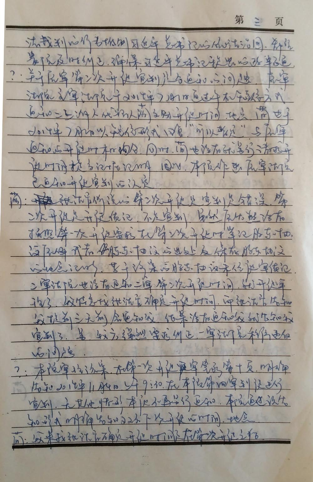 蔺:我方不需要法院解答,这是一个法定回避的。第四,一审法院未经传唤开庭时间,二审法院以是我发了短信暂定开庭时间为由,说我未到庭,二审法院认为我用手机短信确定的暂定时间就是开庭时间,我认为这是极其不负责任的,法律规定的是当事人和代理人拒不到庭的理由是经人民法院传唤无正当理由拒不到庭的,而不是电话通知,也不是代理人确定的短信暂定时间为开庭时间,由于本案送达时间是在中央依法治国会议之后,本代理人有理由怀疑眉山中院用枉