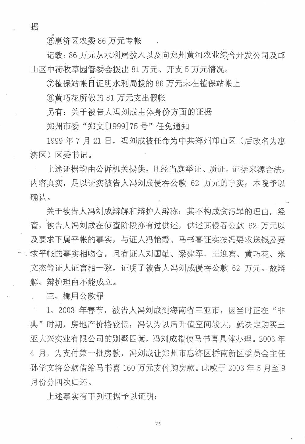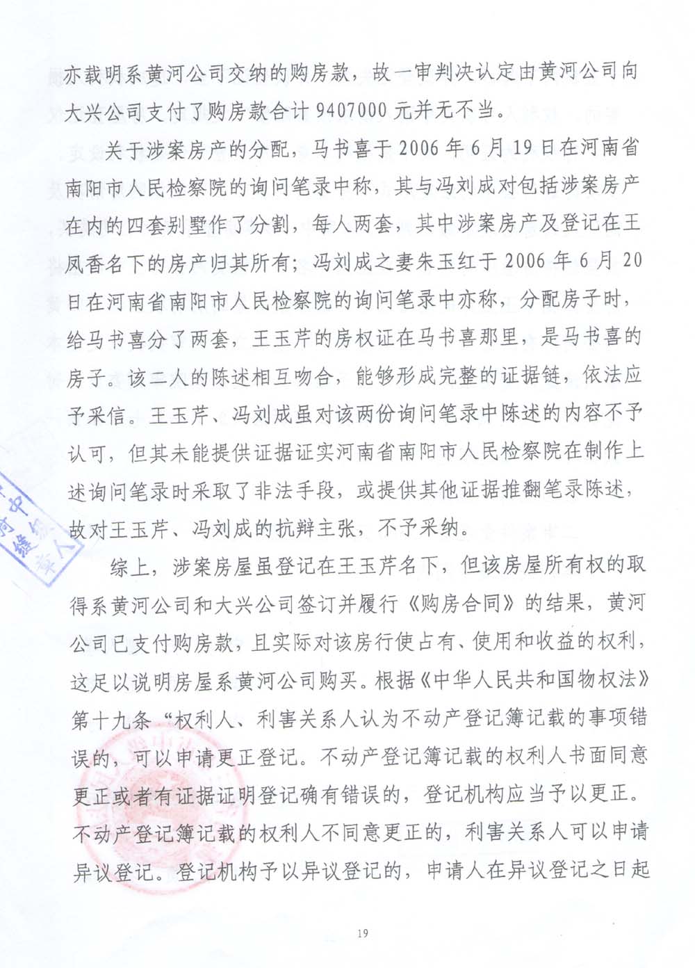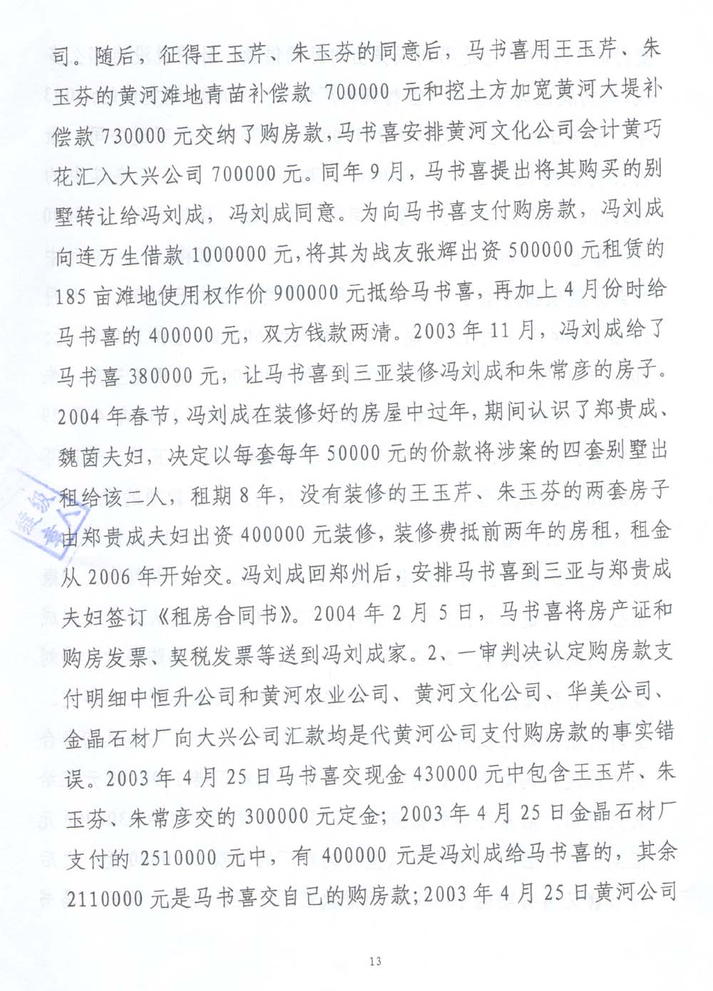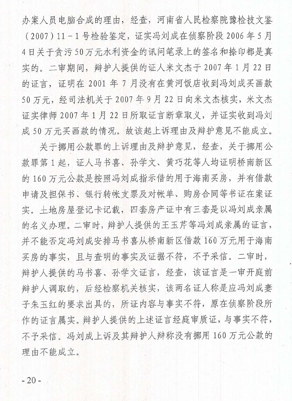 南阳市中级人民法院审理认为,被告人冯刘成犯受贿罪、贪污罪、挪用公款罪的主要证据有海南省三亚市的四套房产(别墅),该房产的所有权已经于2013年5月6日被海南省三亚市城郊人民法院依法判令归河南黄河生态旅游有限公司所有。该生效民事判决已经确定南阳市中级人民法院认定被告冯刘成利用或者拥有三亚的四套别墅的行为够犯罪有误,类似与呼格吉勒图案件的真凶出现基本相同,这次就看河南省高院如何处理了。
