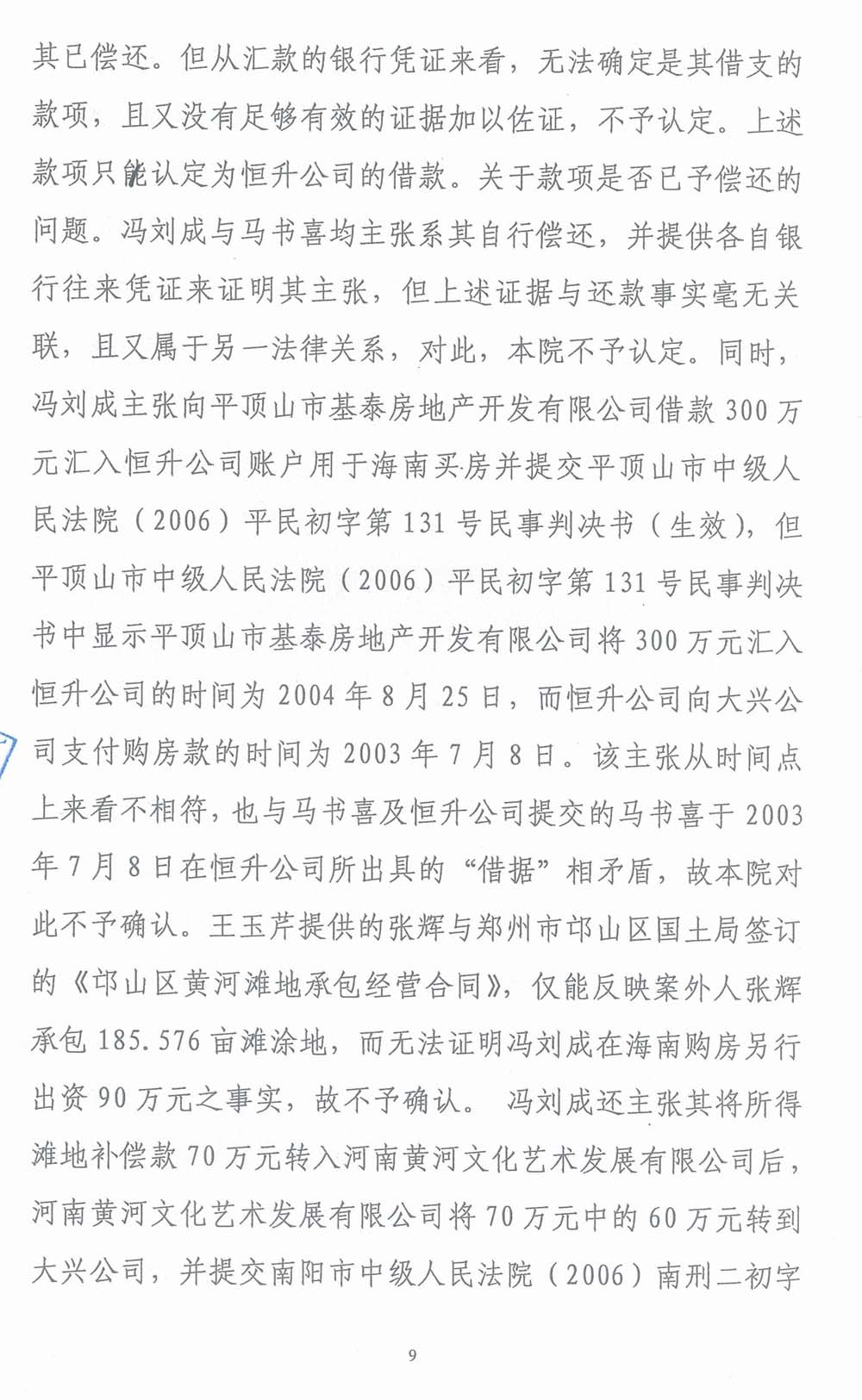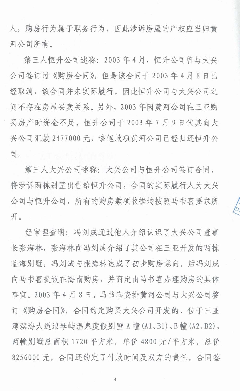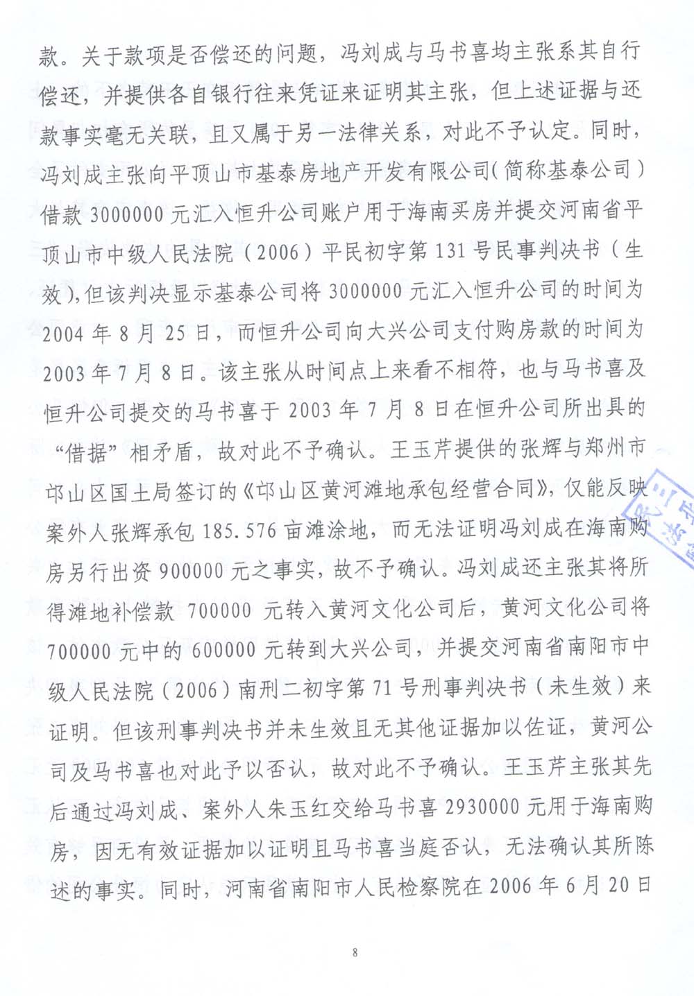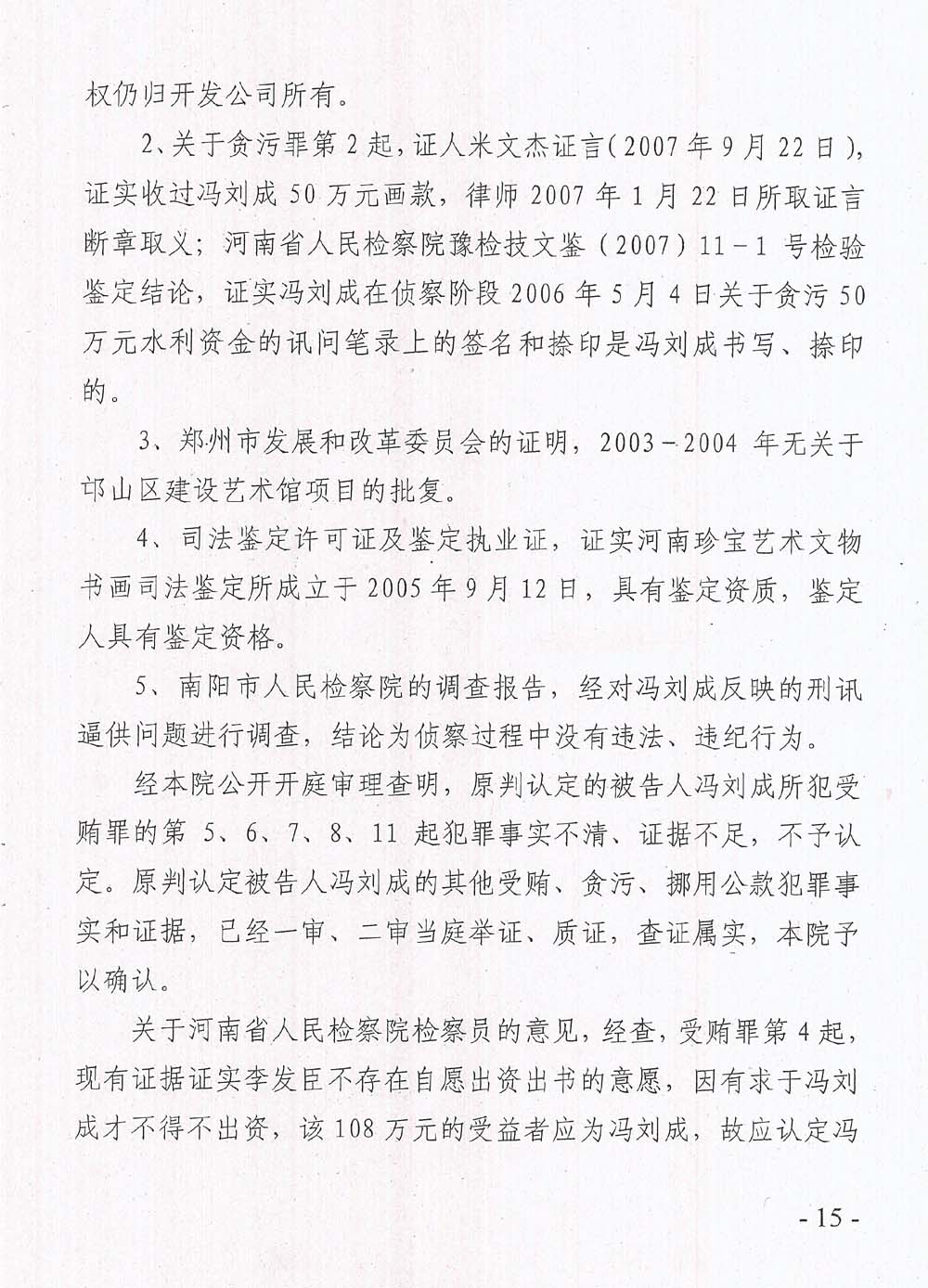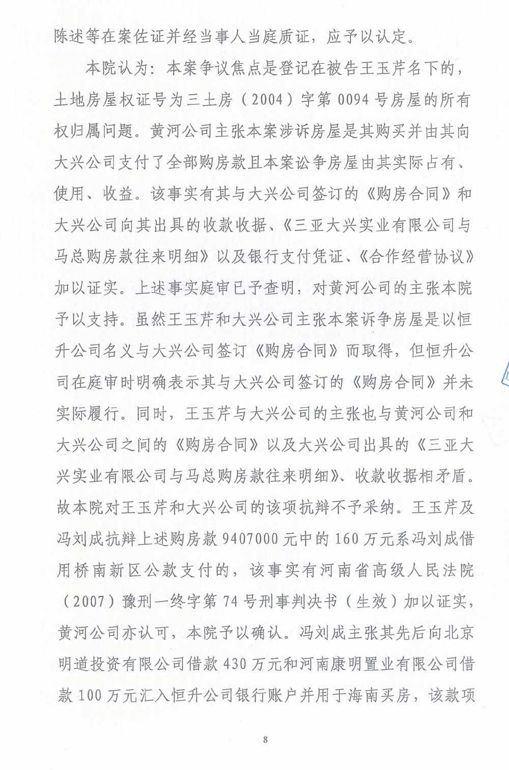 南阳市中级人民法院审理认为,被告人冯刘成犯受贿罪、贪污罪、挪用公款罪的主要证据有海南省三亚市的四套房产(别墅),该房产的所有权已经于2013年5月6日被海南省三亚市城郊人民法院依法判令归河南黄河生态旅游有限公司所有。该生效民事判决已经确定南阳市中级人民法院认定被告冯刘成利用或者拥有三亚的四套别墅的行为够犯罪有误,类似与呼格吉勒图案件的真凶出现基本相同,这次就看河南省高院如何处理了。
