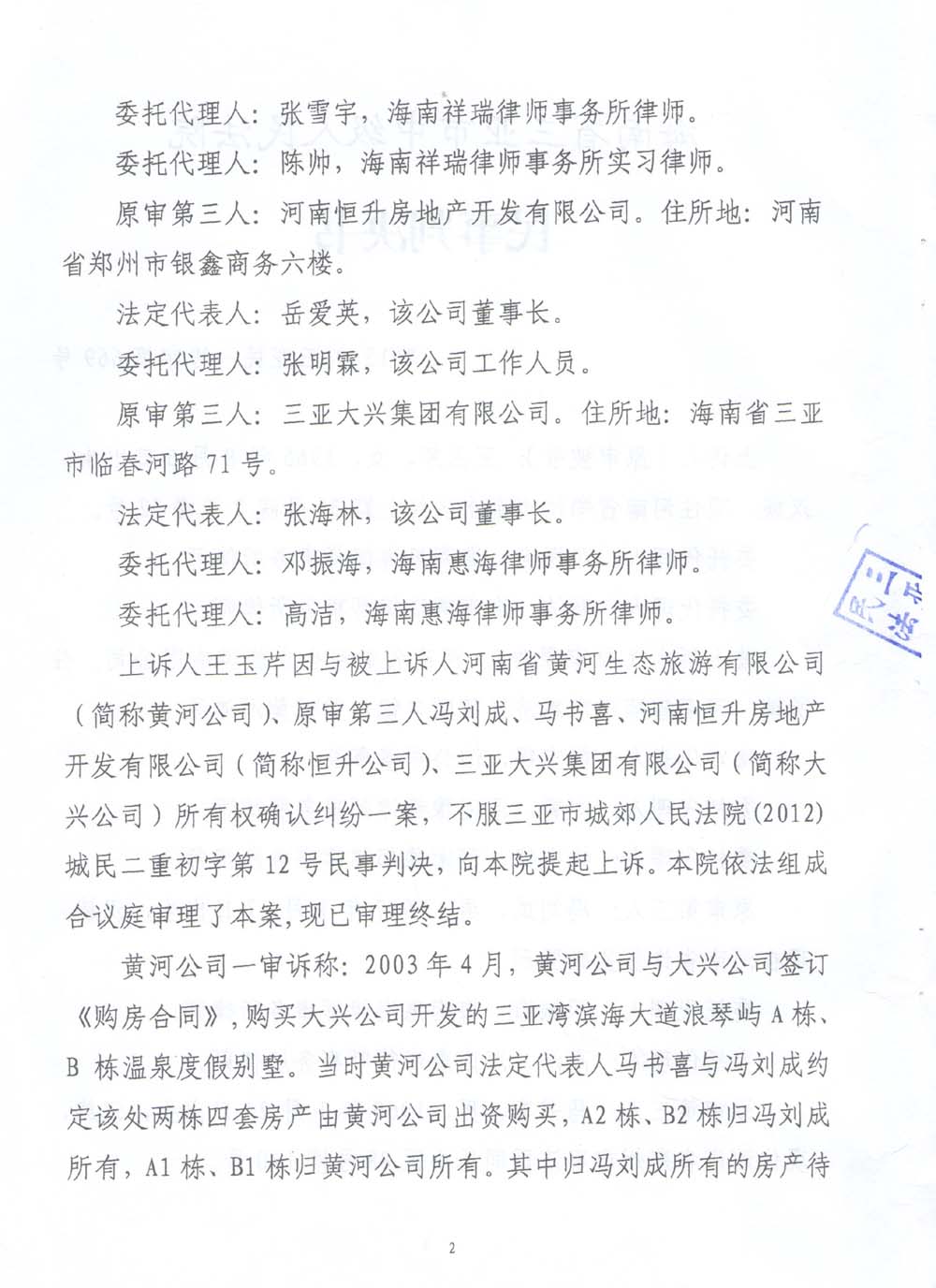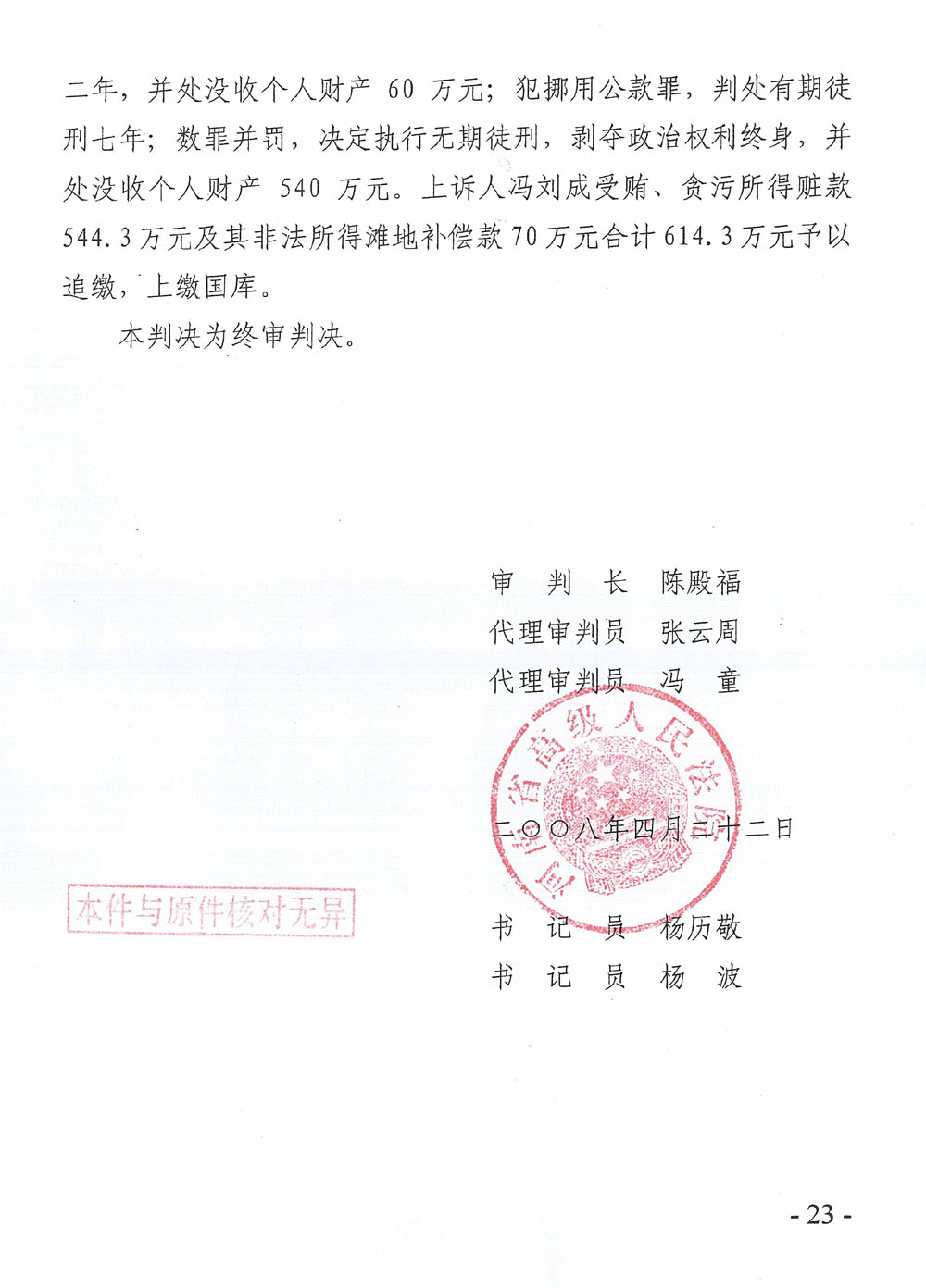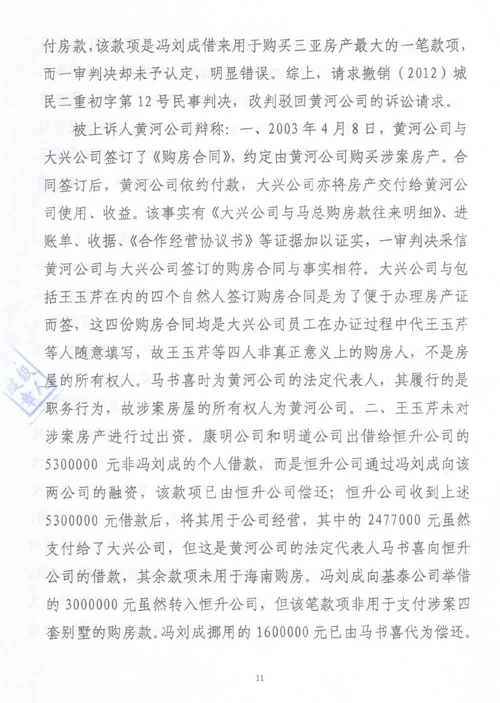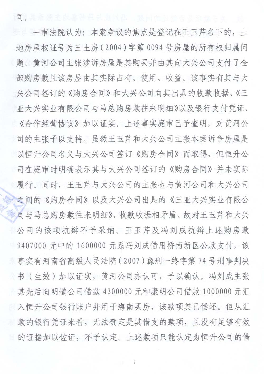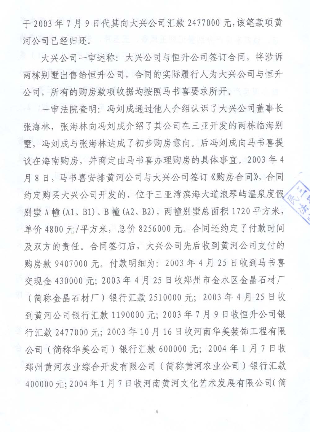 南阳市中级人民法院审理认为,被告人冯刘成犯受贿罪、贪污罪、挪用公款罪的主要证据有海南省三亚市的四套房产(别墅),该房产的所有权已经于2013年5月6日被海南省三亚市城郊人民法院依法判令归河南黄河生态旅游有限公司所有。该生效民事判决已经确定南阳市中级人民法院认定被告冯刘成利用或者拥有三亚的四套别墅的行为够犯罪有误,类似与呼格吉勒图案件的真凶出现基本相同,这次就看河南省高院如何处理了。