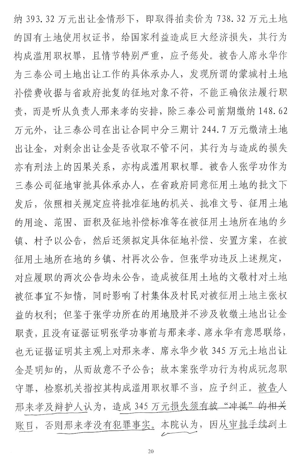 公诉机关指控邢来孝用王学亮提供的假收据冲抵征地款345万元的行为构成滥用职权罪,之后在庭前会上明确表示没有冲抵345万元账目。