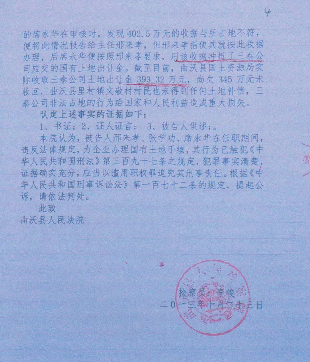 能否看清楚是检察院指控、还是曲沃县人民法院指控吗?