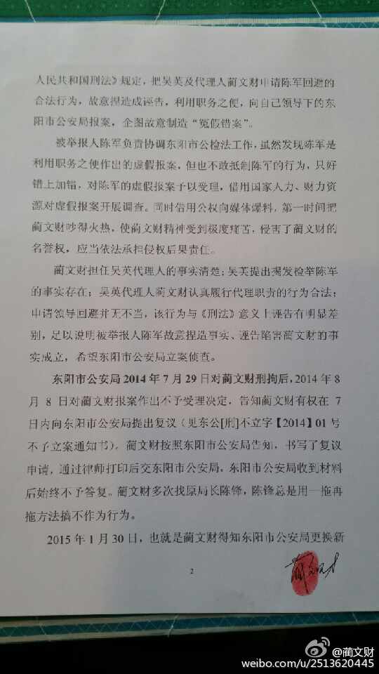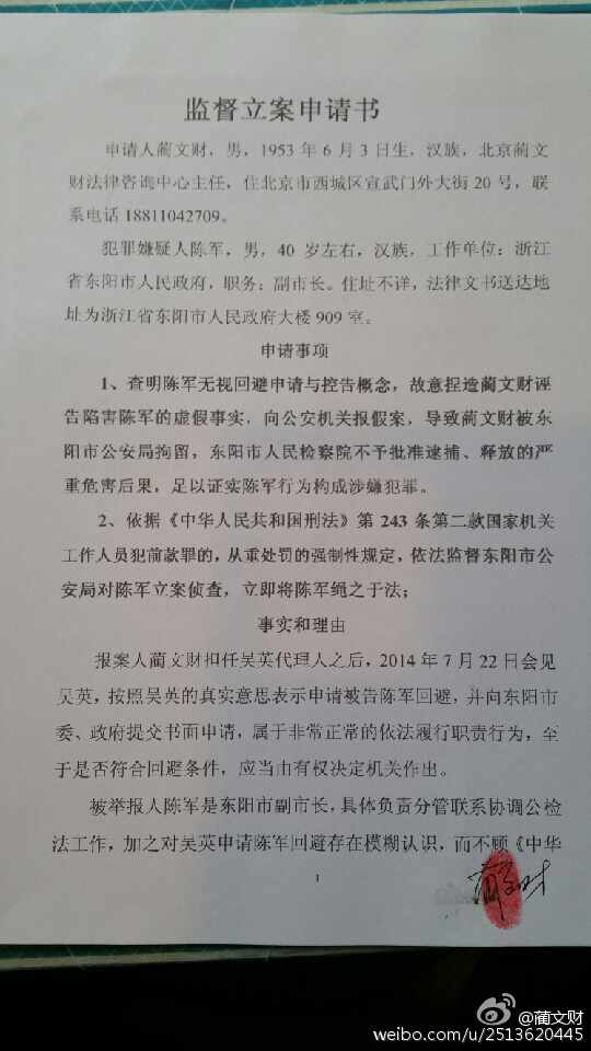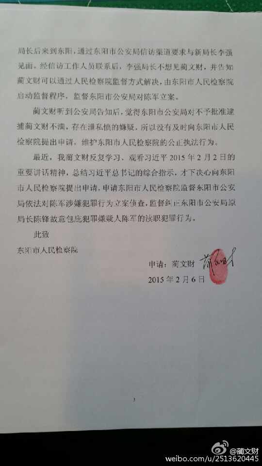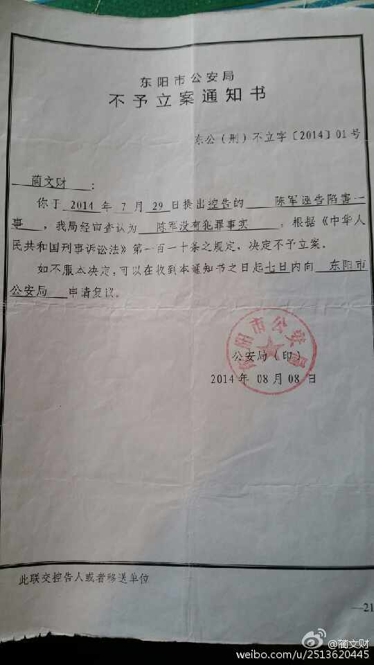 尽管蔺文财如何努力依法维权,东阳市公安局还是不敢对陈军立案侦查,让犯罪事实非