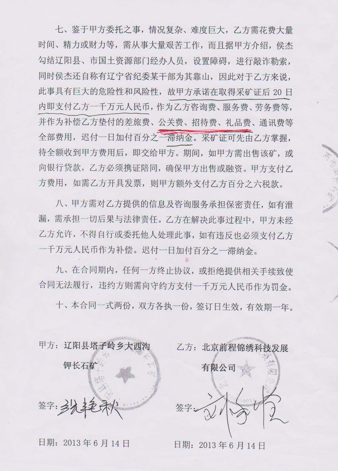 认为这份委托代理合同约定的是扩界变更采矿权许证,你已经拿到扩界变更采矿权许可证