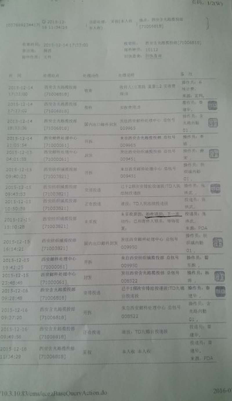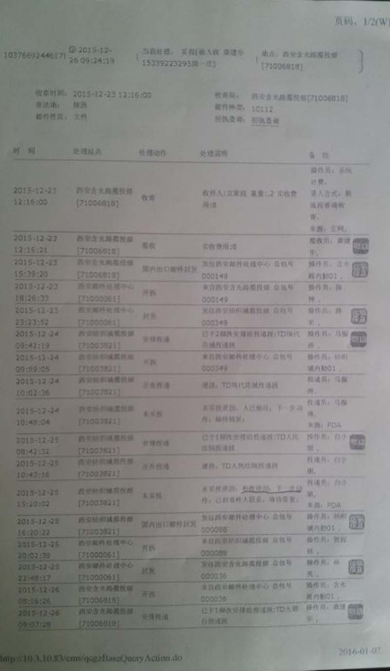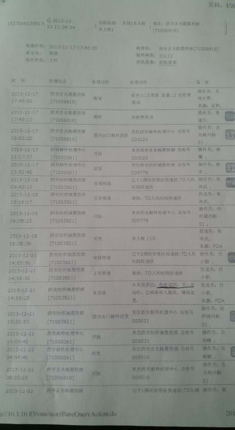 这一组四份材料可以证实西安市灞桥区人民法院两次绝收当事人采用特快专递邮寄民事起诉状的错误行为,灞桥区人民法