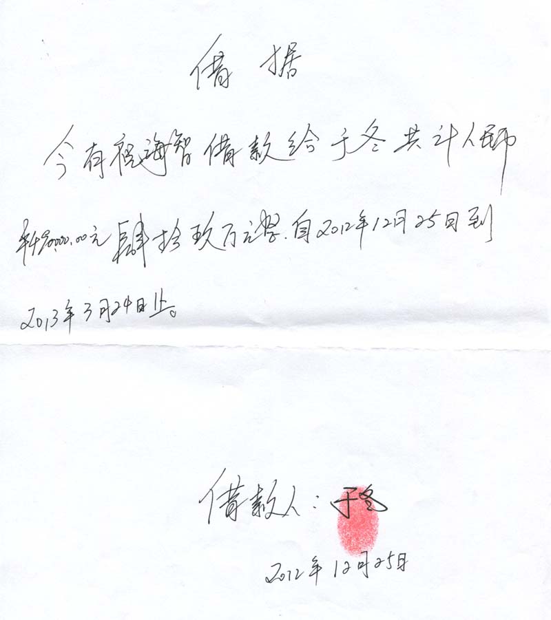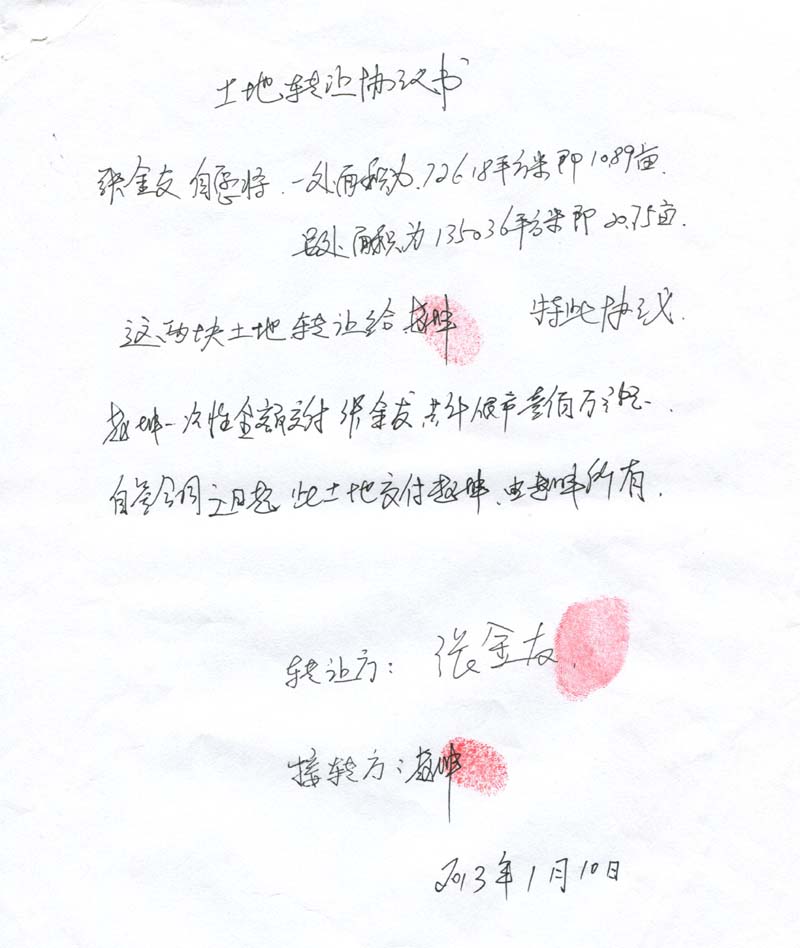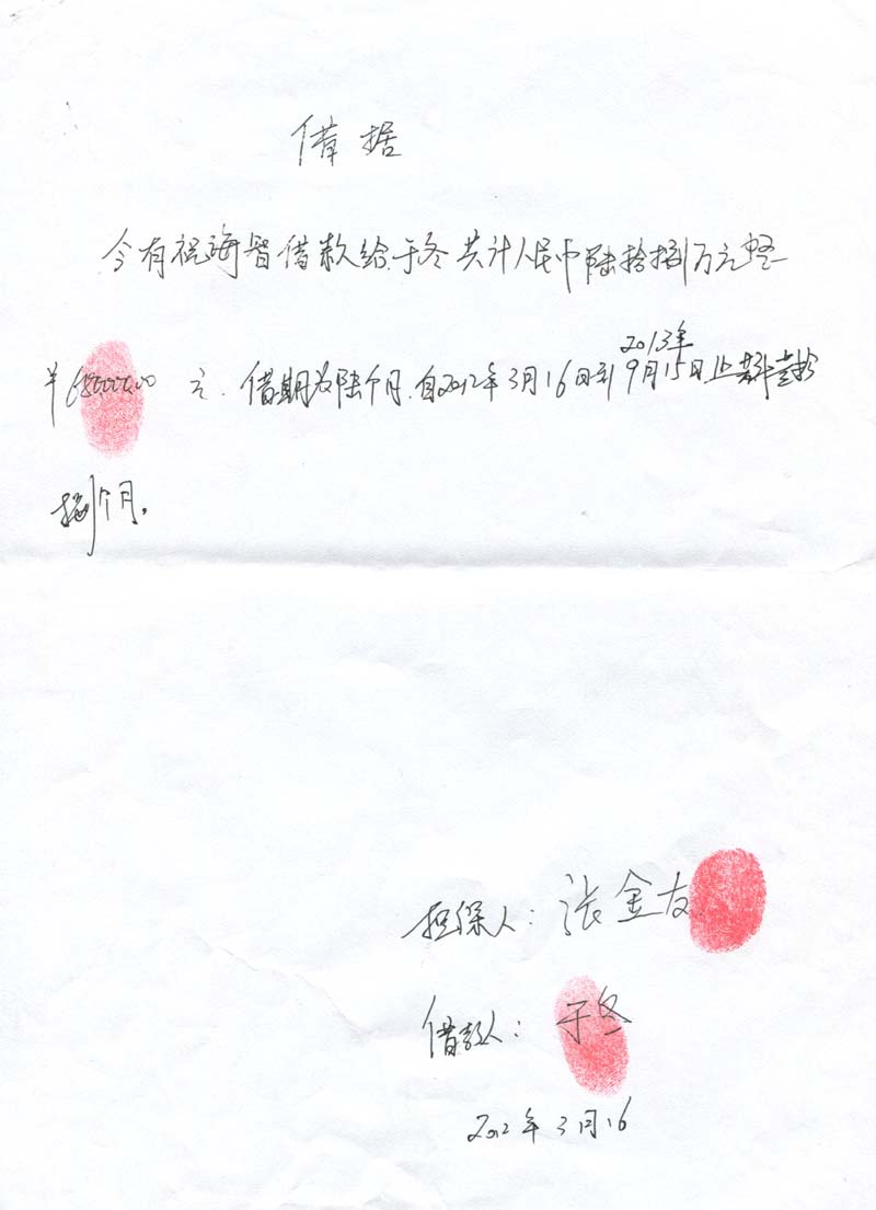 1、2013年1月2日,于冬让张金友伪造“哈尔滨市村镇房屋所有权证原件”(根本就没有登记档案),故意与祝海智签订“房屋买卖合同书”,骗走祝海智200万元钱非法占为己有。