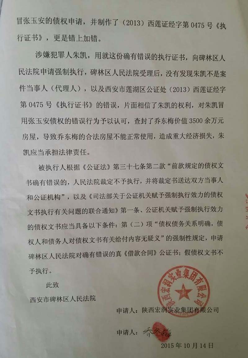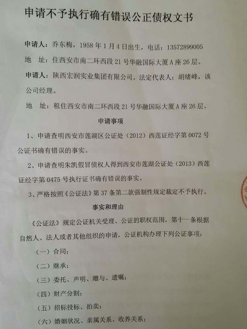 乔冬梅2015年10月发现上述错误行为,立即向碑林区人民法院执行法官《申请不予执行确有错误的债权文书》,并要求组织召开听证会(见书面申请)。
