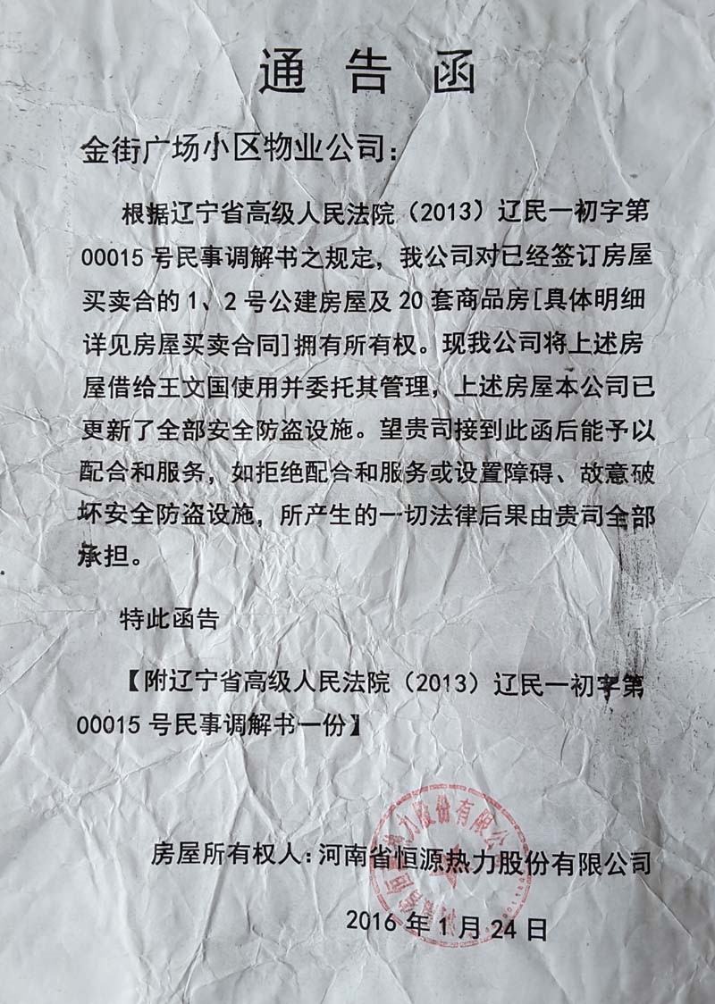 甲方(王洪生)于2016年1月24日,冒用原告恒源公司和案外人薛运达名义发出通知函,自称恒源公司、薛运达为房屋所有权人,这是完全错误的(见通知函)。