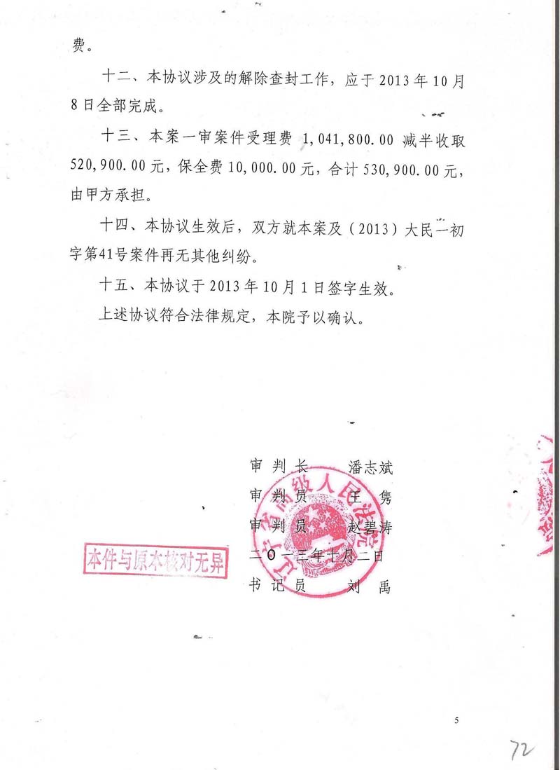 经法院确认的调解书第十一项:上述房屋销售数额,销售1.2亿以内的税费由乙方承担,销售1.2亿以上的税费由甲方承担,相当于恒源公司起诉收益4900万元,乙方(王洪生保证人)却可以从中裕公司和恒源公司共获得1.2亿之多的不当得利(见【2013】辽民一初字第00015号民事调解书)。