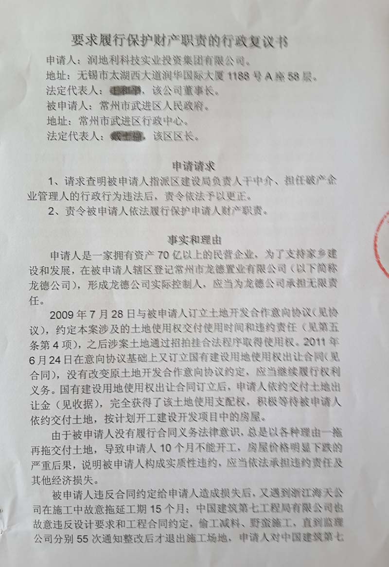 江苏省常州市武进区人民法院已经指定了破产清算管理人。如今,地产公司常州龙德置业有限公司(下称龙德置业)的资产拍卖工作如箭在弦。随着时间的流逝,王和平希望扭转资产被强拍的努力,也慢慢走向渺茫。在他们看来,项目资产远远未到资不抵债的地步,破产清算无异于一场资产洗劫。
