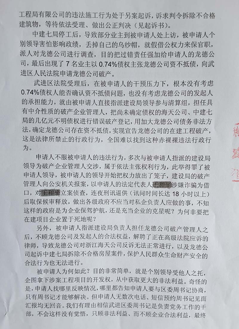 在王和平看来,这样的速度,显示出有关方面推动破产清算的急切心情,其目的令人质疑。另外,他们曾提出破产重整的请求,但被法院驳回,此举令王和平非常不满。“我本来有信心通过重整翻转局势,但我带着投资人去跟法院谈,法官一边说这个项目能稳赚一个亿,一边却劝走了投资人。”他说。