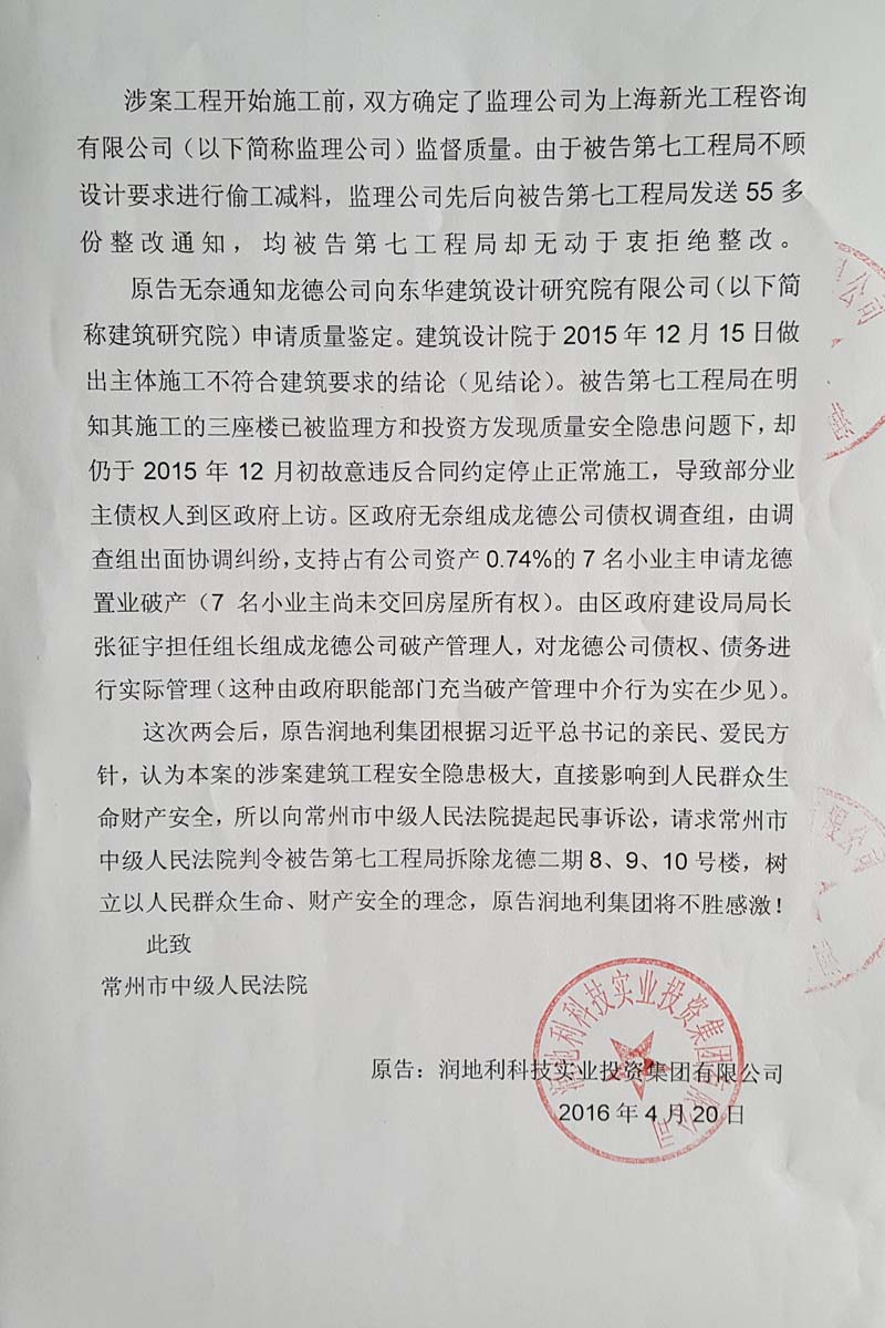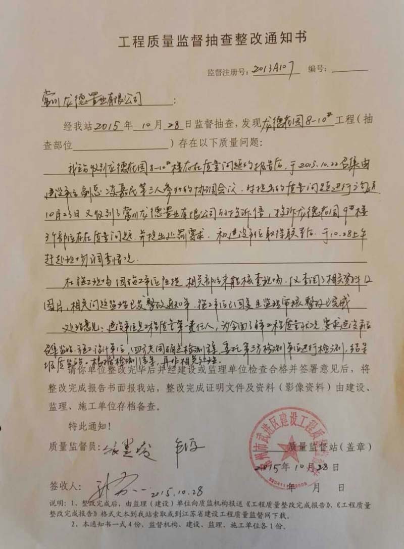 公司多次向武进区建设局提出质量监督,建设局始终没有