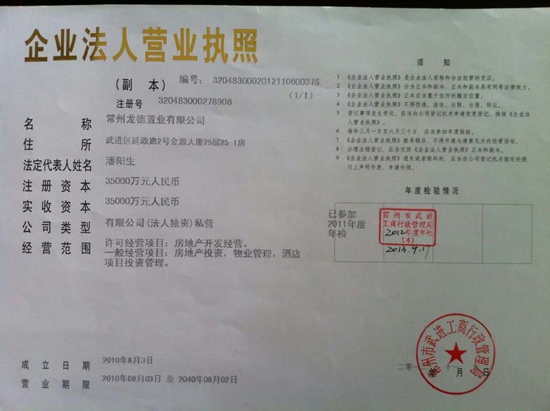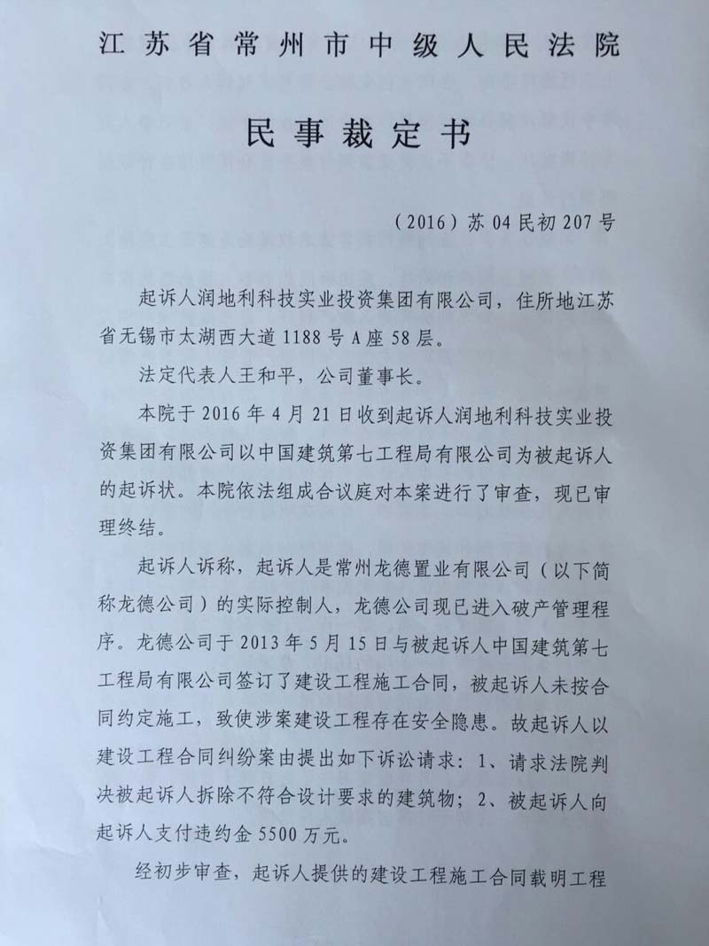 王和平是常州市润地利集团的董事长和法定代表人,是龙德置业等十多家企业的实际控制人,而龙德置业在常州市武进区开发有龙德花园项目。公开资料显示,龙德花园项目位于武进新区腹地,总建筑面积51万平米,为集住宅、写字楼、酒店式公寓、会所等于一体的“都市综合体”。