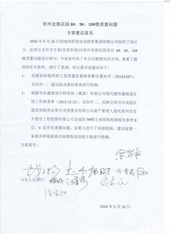 设计单位在今年2月8日杭州市滨江区住建委对辛迪置业有限公司关于“钢筋是否需要进行检测的报告”的《回复函》:“已经明确要求检测”。甚至在去年12月6日的一次协调大会上施工方自力建设也同意进行一次检测,但次日,自力建设却提出了反悔。如今,因为自力建设的反悔,大楼使用钢筋的检测又被搁浅起来。