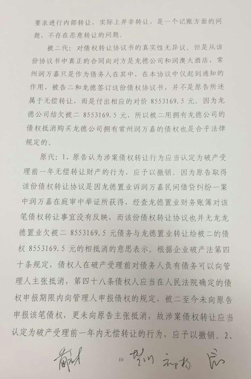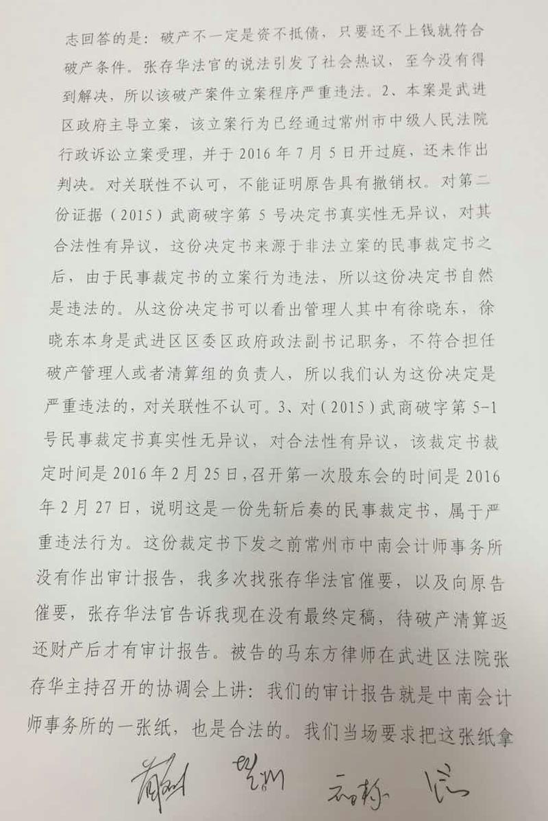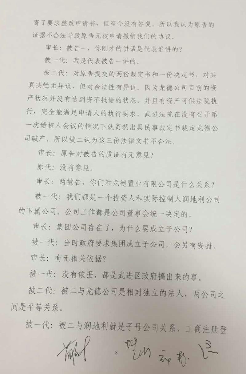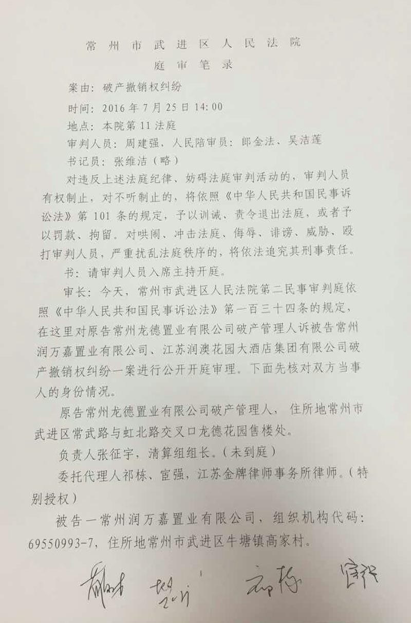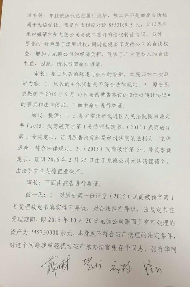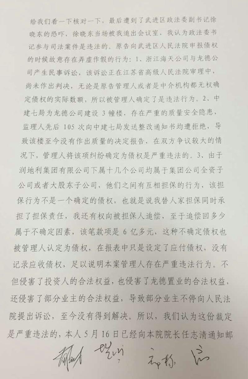 武进区委领导得知情况后,指派政法委处理此事,并武进区人民政府的名义下发调查审计通知(属具体行政行为),通知要求审计部门驻入龙德公司进行调查审计,干预非公企业正常经营管理的行为是违法的,已经进入行政复议诉讼阶段。