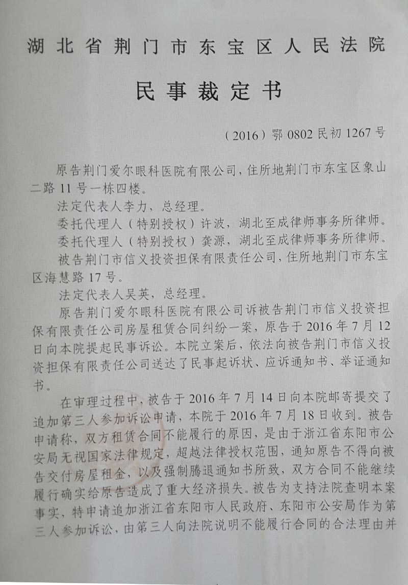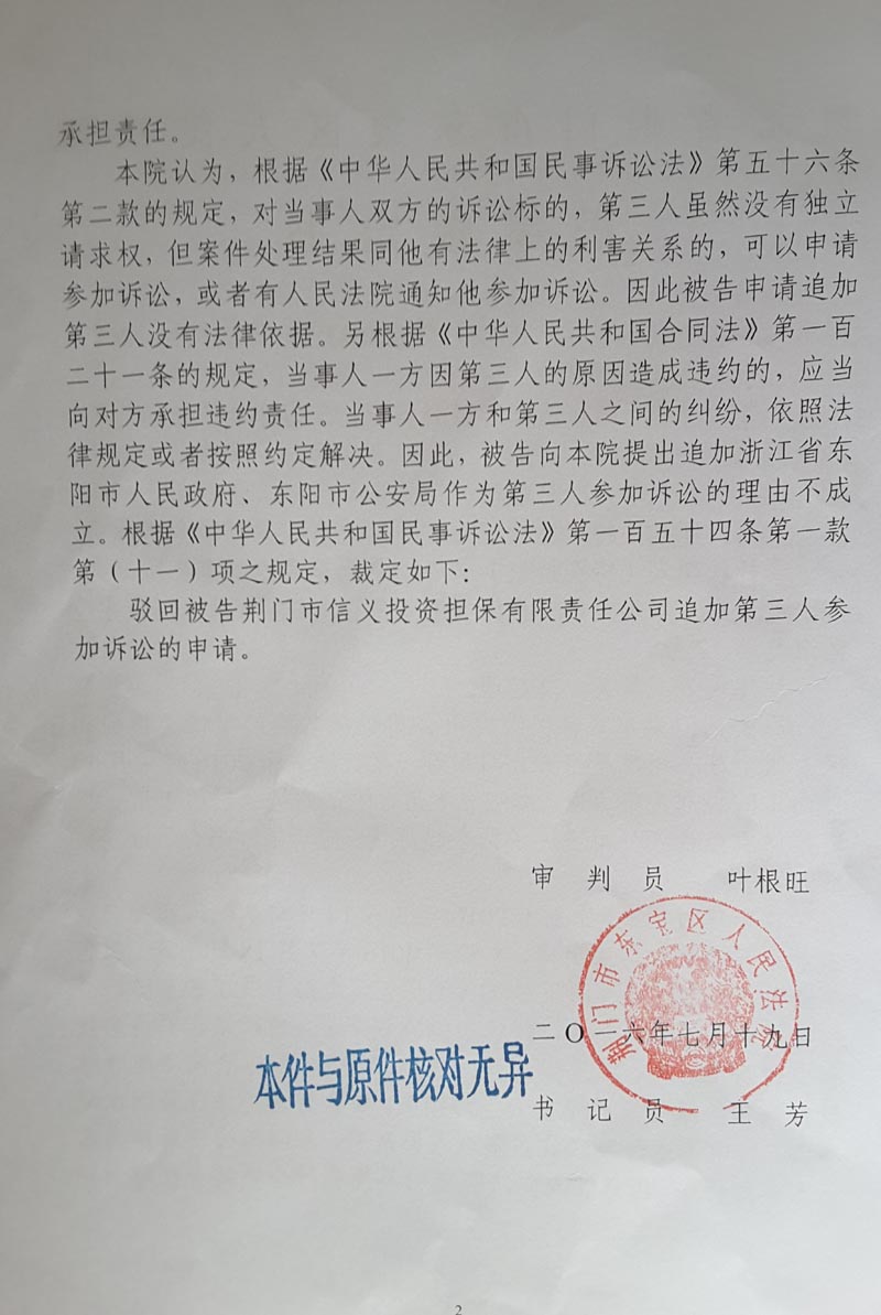 信义担保公司2016年7月6日收到荆门市东宝区人民法院定于2016年7月22日开