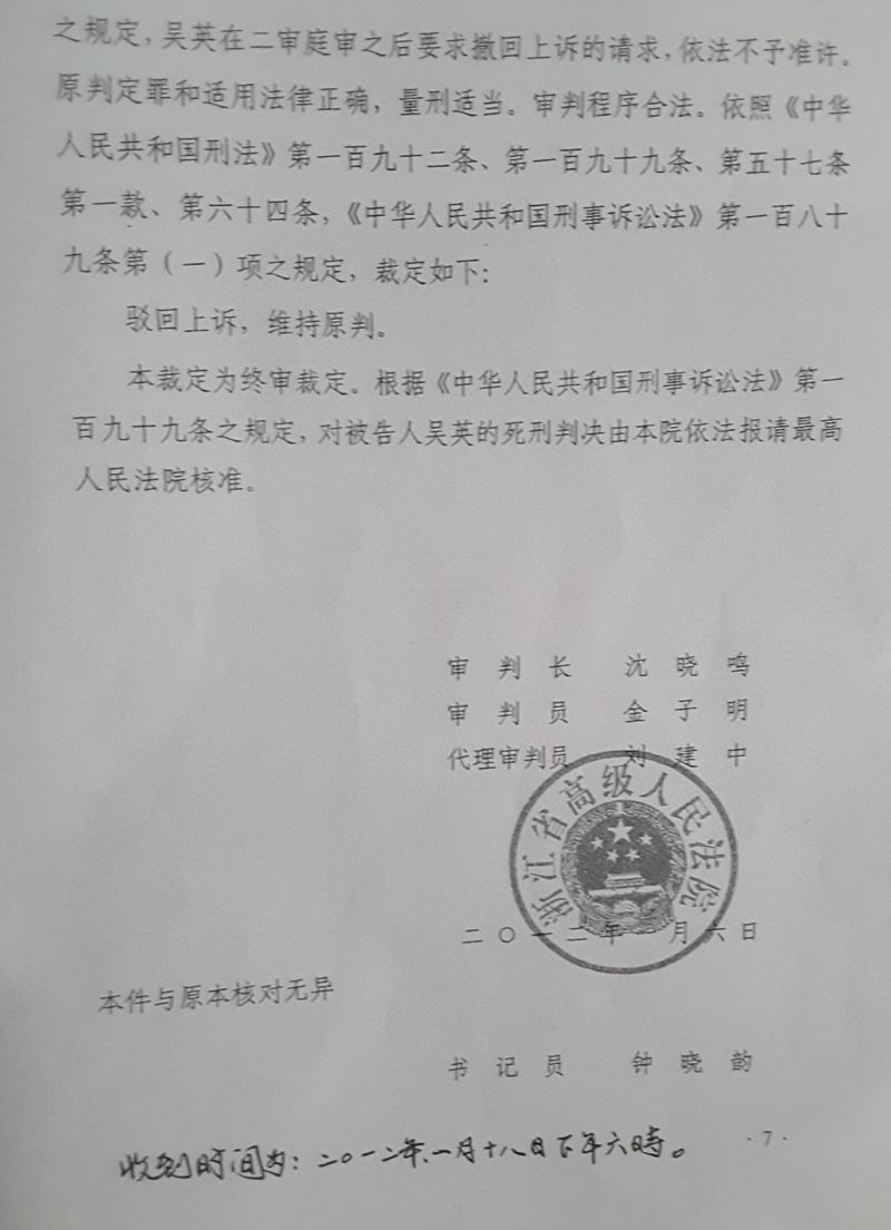 华市中级人民法院、浙江省高级人民法院、最高人民法院的发生法律效力刑事判