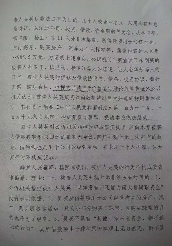 的有限责任公司,法定代表人为吴英。根据登记注册的工商行政管理局资料显示