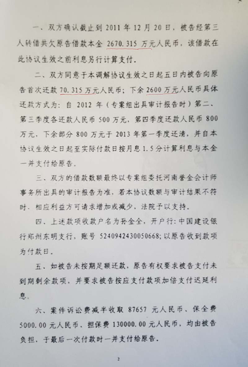 借给鲁泊麟4500万元,除放弃部分给付权利外,大部分已经得到郑州市中级人民法院支