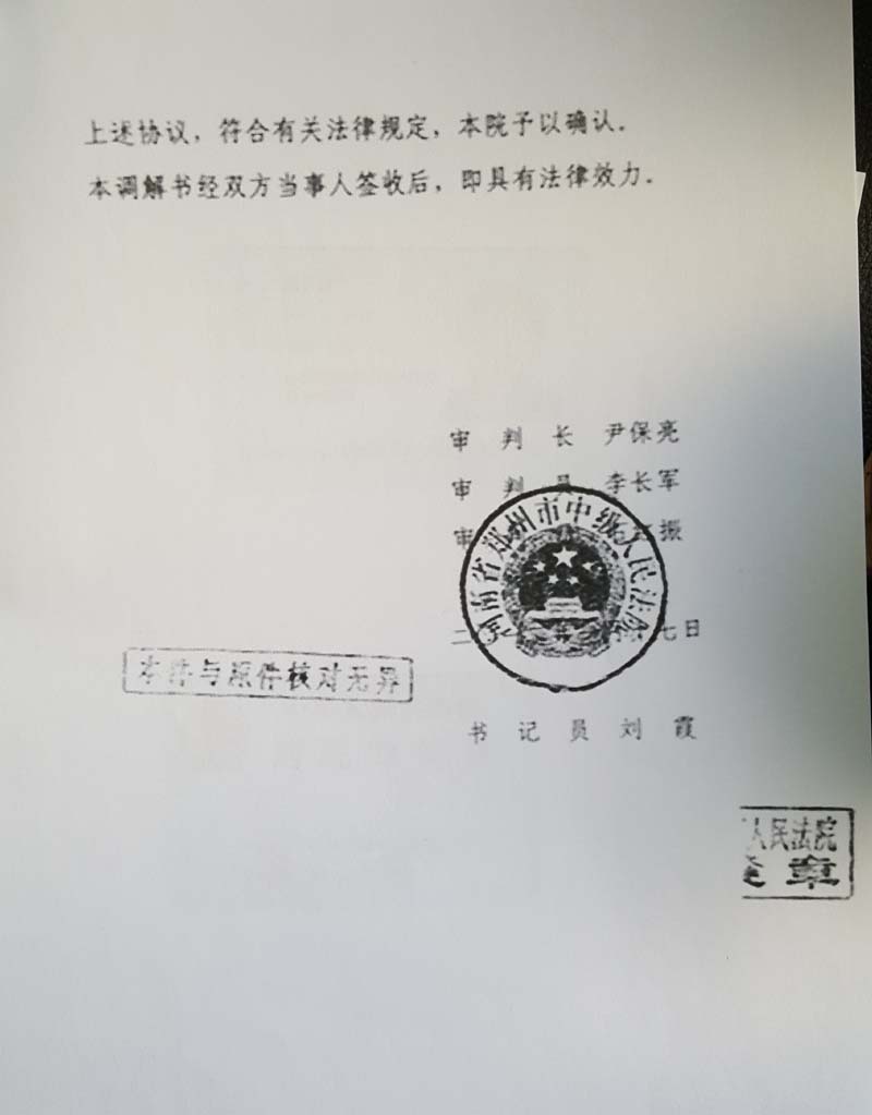 从郑州市中级人民法院2012年1月17日制作的(2012)郑民四初字第8号民事调解书
