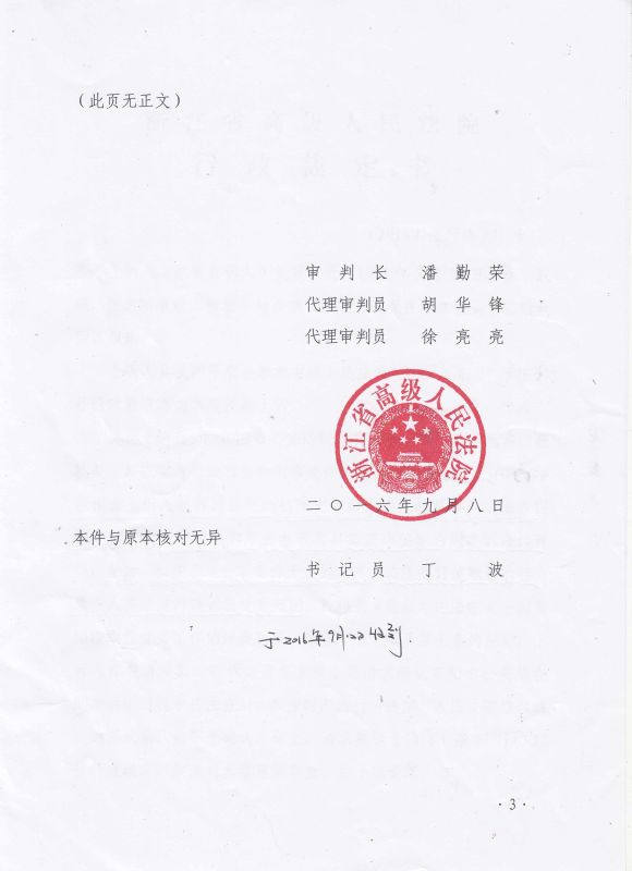 3、请求依法提审这起特大影响的行政诉讼案件,或者指令浙江省以外的其他省中级人民法院立案审理,落实习总书记让人民群众在每一个司法案件中感受到公平正义。