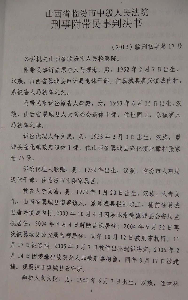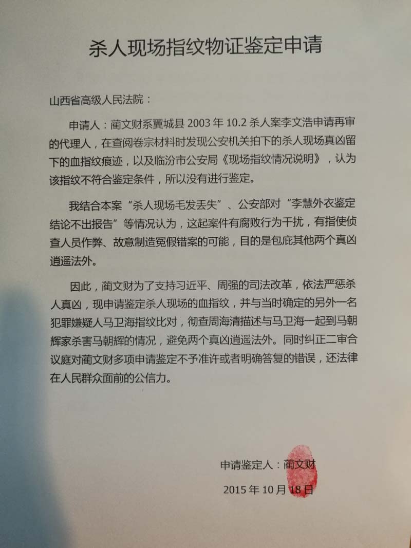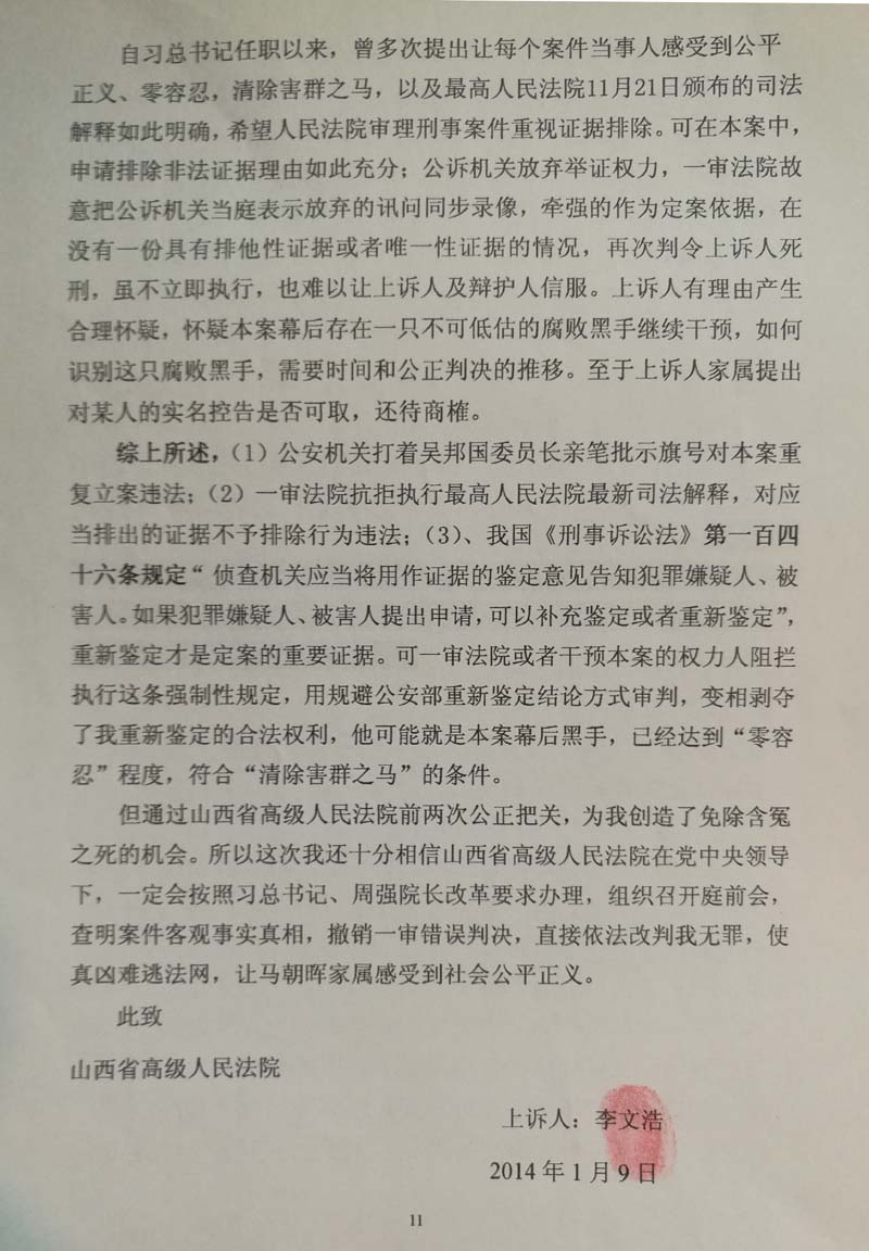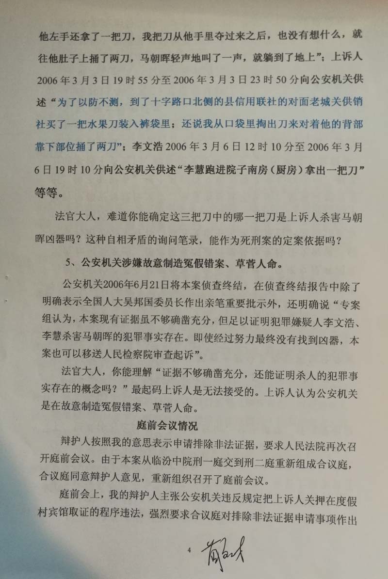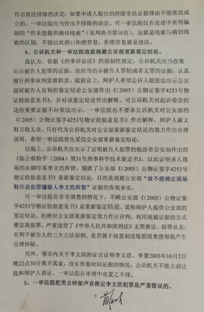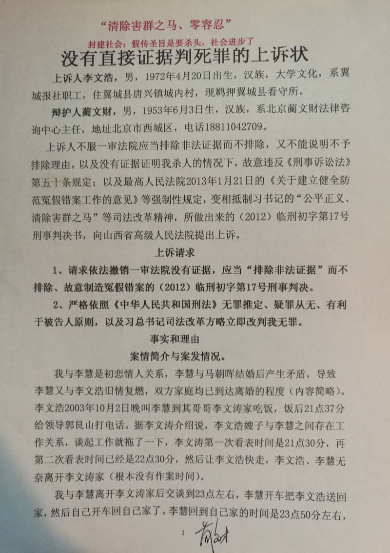 写上诉状理由很充分、非常正确,是基于临汾市中级人民法院用37份指控证据判李文浩犯故意杀人罪