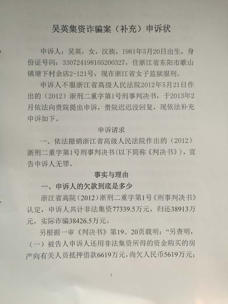 吴英在我们的耐心帮助下,终于再一次签字认可了刑事申诉事宜,让我们圆满的完成了会见工作。我们同日下午到浙江省高级人民法院再次申诉立案,希望浙江省高级人民法院能够按照立案登记制度给予受理。在法官审查立案过程中,发现2013年至2016年有多次催办函,均催办吴英刑事申诉案处理情况,所以法官不同意重新登记立案。我们万般无奈,让法官仔细查阅人民日报旗下的《中国经济周刊》2016年12月5日发布法制人物田文昌律师对吴英案的观点“吴英案百分之百平反”,法官才勉强重新给予重新立案登记,相信这次不会再等三年。