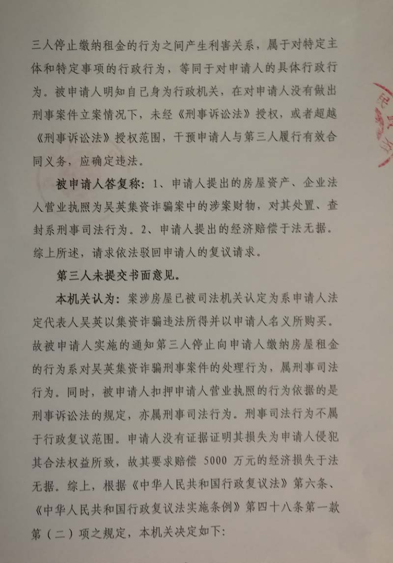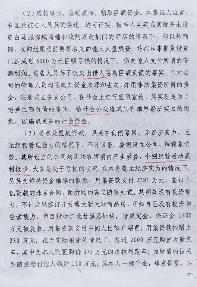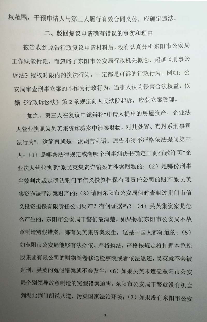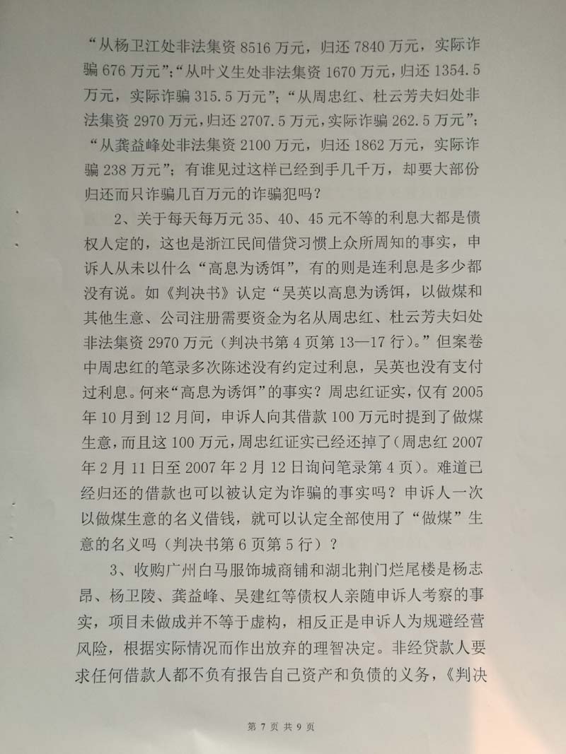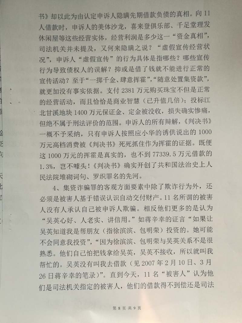 笔者按照中共中央的会议精神,预约了吴英另一名代理律师朱建伟到浙江省女子监狱会见吴英,两人达成2016年12月6日会见计划后,并于2016年12月5日晚来到浙江杭州,巧遇人民日报旗下的中国经济周刊,发表了法制人物田文昌律师对吴英案的意见和观点,题为“吴英案百分之百应平反”。笔者看到这篇文章后一夜无法入睡,考虑次日见吴英时,吴英能否在刑事申诉状和补充材料上签字问题(吴英已对司法公正失去信心)。