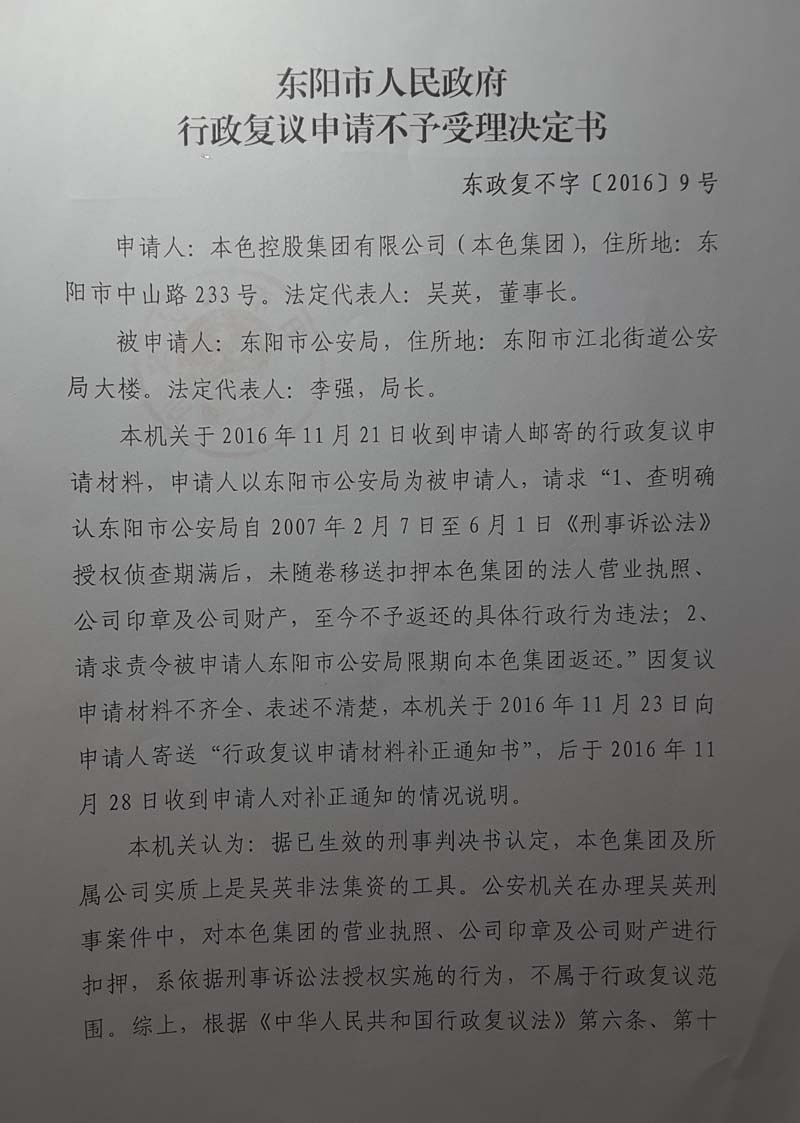 吴英經复议的案件也不受理与腐败有何区别?