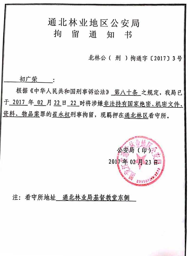 局查到崔永权购买了进京火车票后,以崔永权涉嫌非法持有国家绝密、