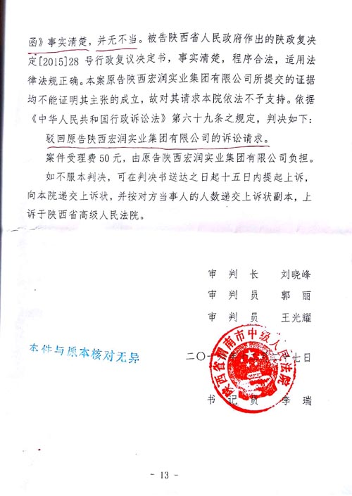 申请人(原审原告、二审上诉人):陕西宏润实业
