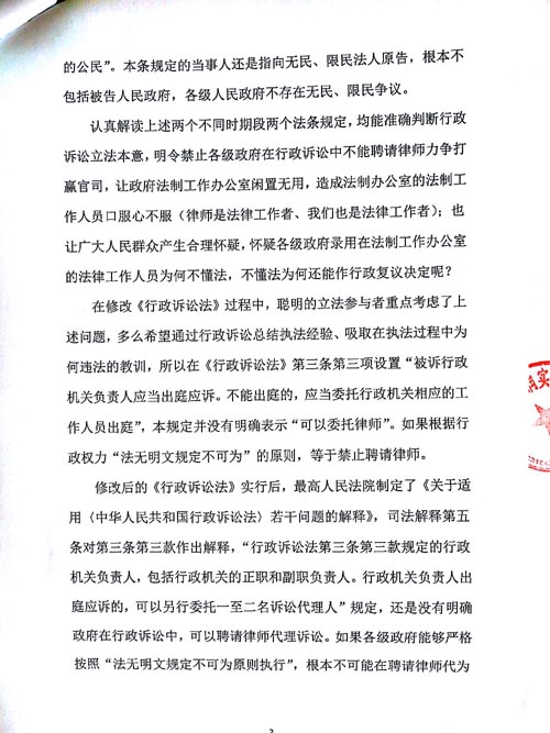 师代为诉讼,继续误读法律。各级政府违背《行政诉