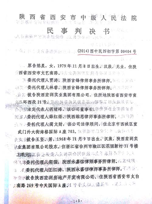 西安市中级人民法院以(2014)西中民四初字第00404号案件受理并判