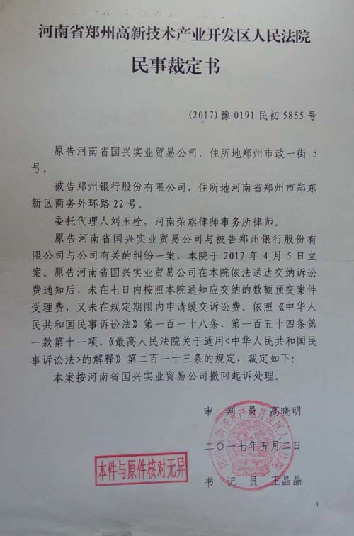 不料,郑州中院立案庭的李小青庭长下午又改变观点,还是应当按照确认归属