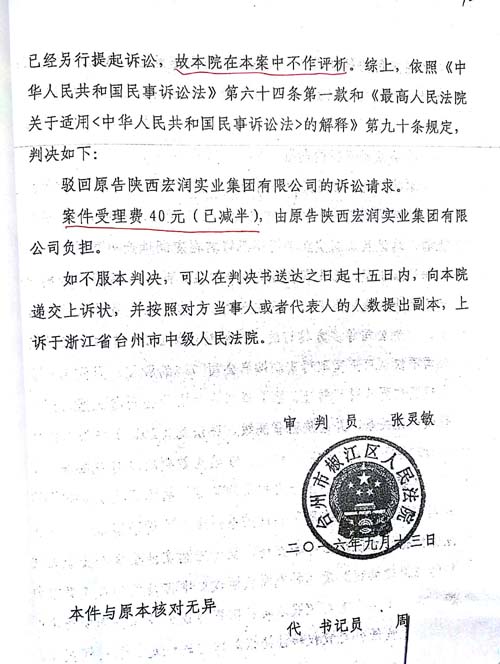 台州市椒江区人民法院以(2016)浙1002民初5161号案件受理并判决,收取40