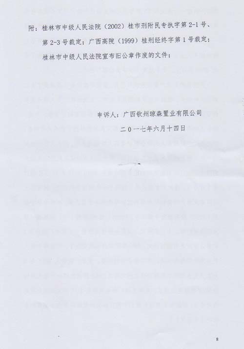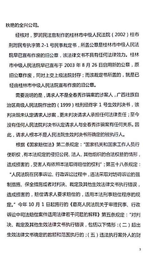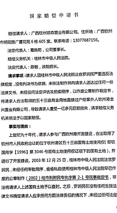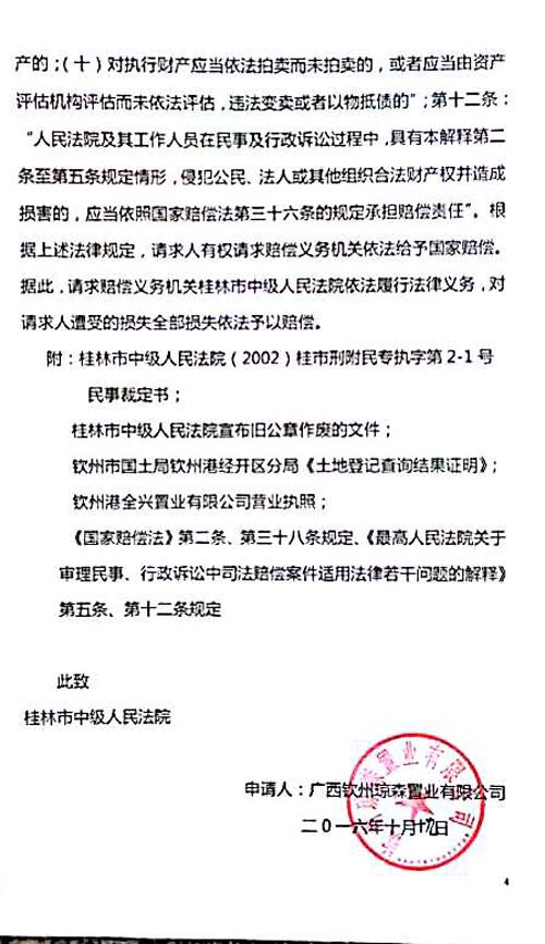 最高人民法院2015年9月30日公正监督下,桂林市中级人民法院受理了司法赔偿,时间已过8
