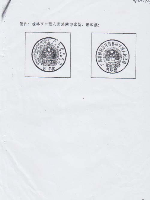 另外,两份裁定书加盖的桂林中院公章是已经作废的公章。《财经》记者获得的一份桂林中院通知文件称,该院新印章从2003年8月28日起启用,旧印章同时停止使用。