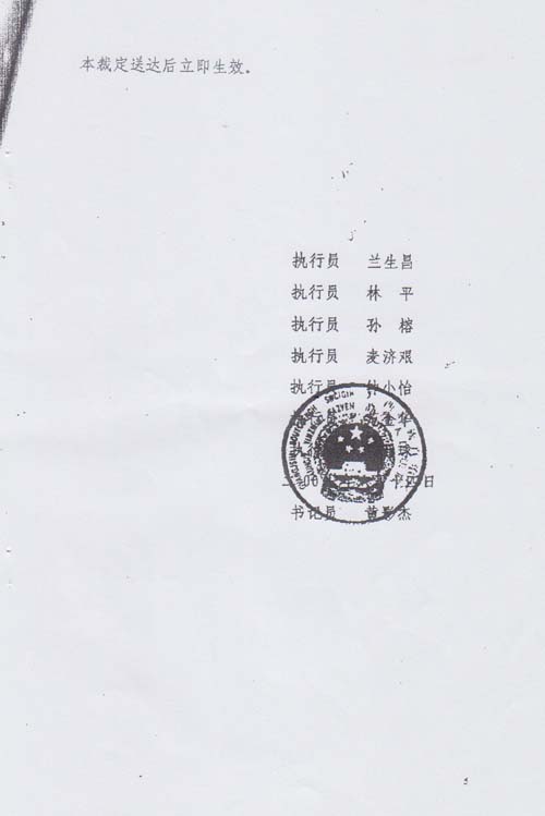 3、依法撤销桂林市中级人民法院罗润民法官2003年12月25日盗用已经封存数月印章伪造的“(2002)桂市刑附民专执字第2-1号民事裁定书”,做到有法必依、执法必严、有错必究。