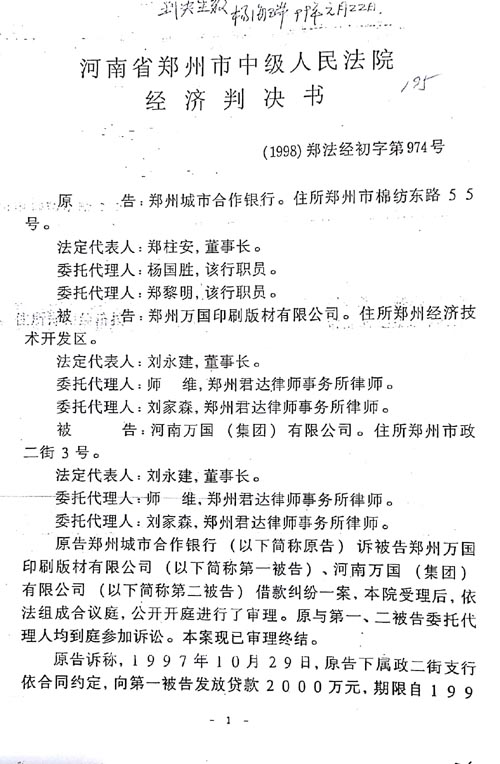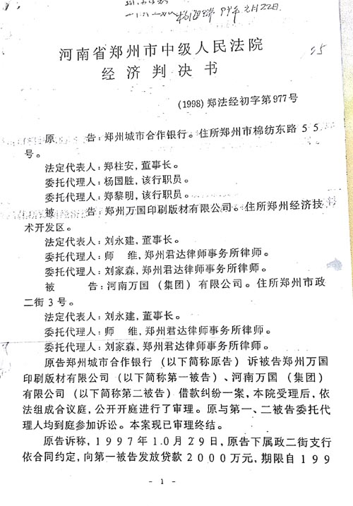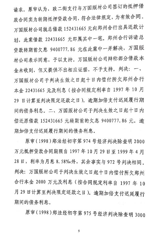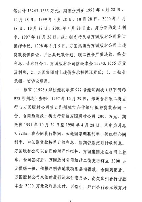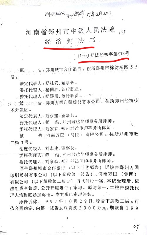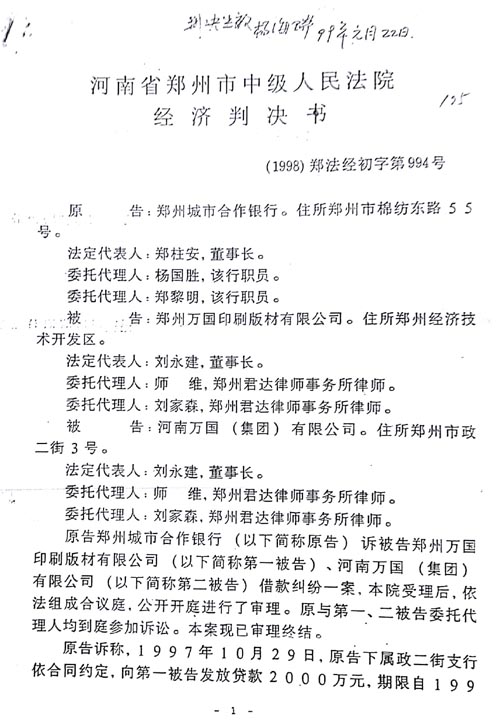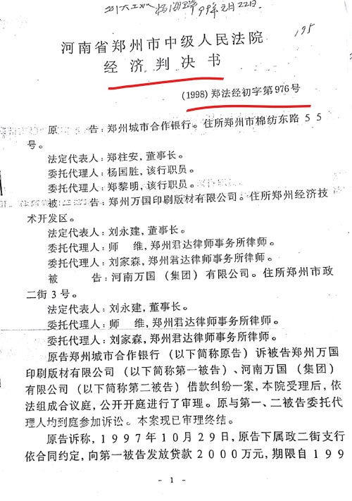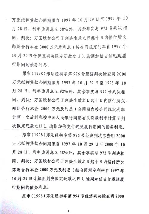 郑州市合作银行1997年分7次向郑州市中级人民法院起诉,请求判令郑州万