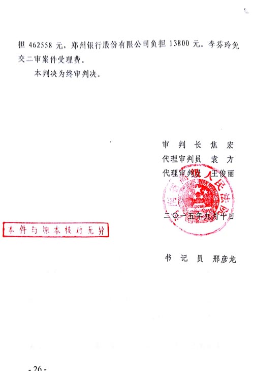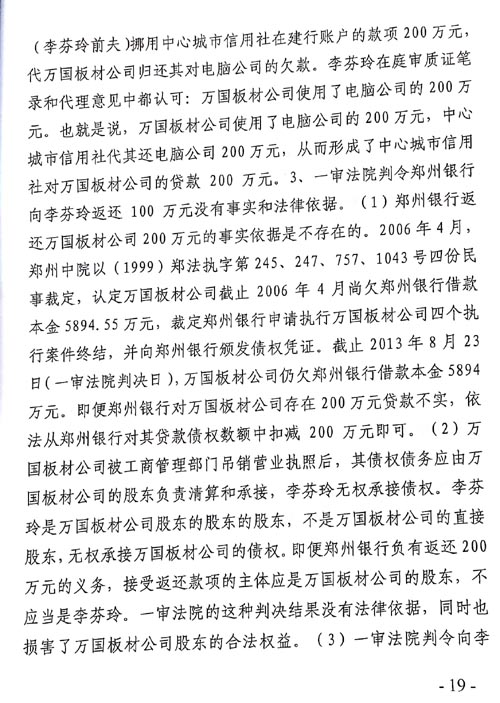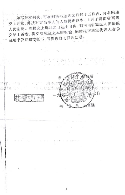 李芬玲不服郑州市中级人民法院的低级错误审判行为,向河南省高级人民法院