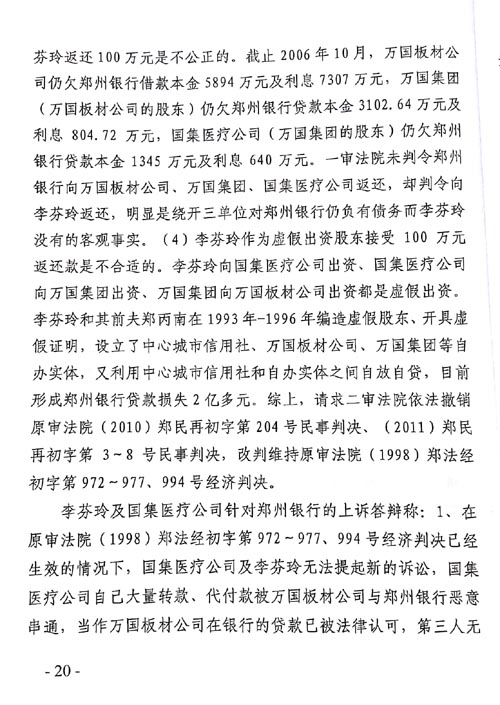 河南省郑州市中级人民法院的再审程序中,引用了(2010)郑民再初字第20