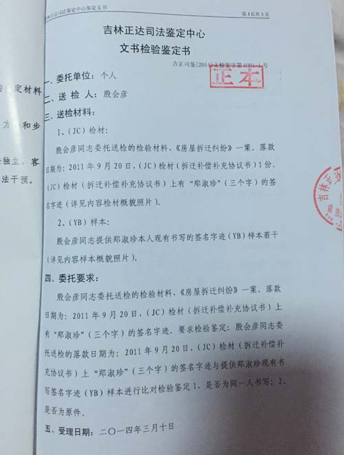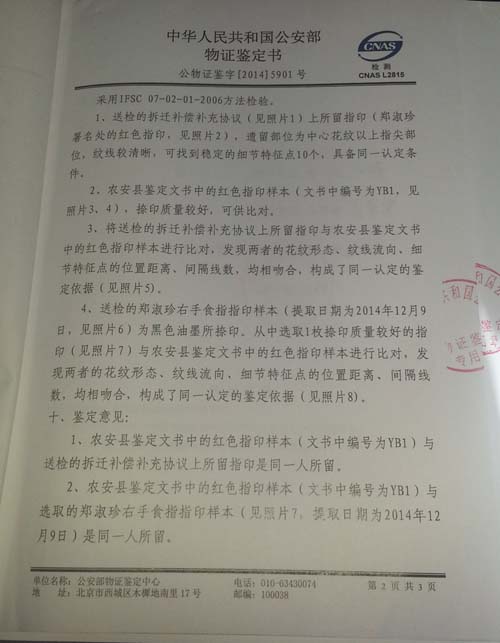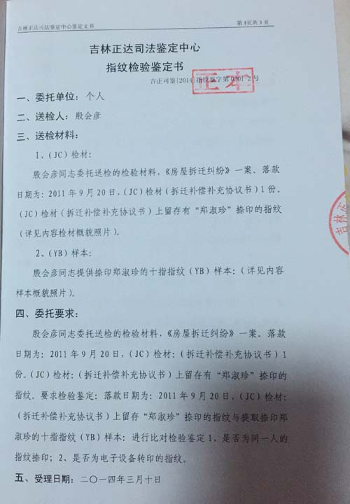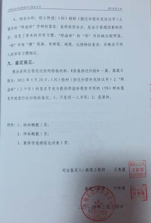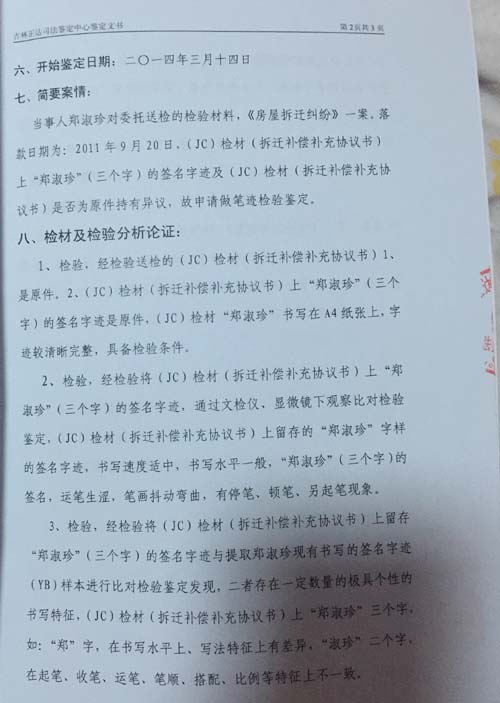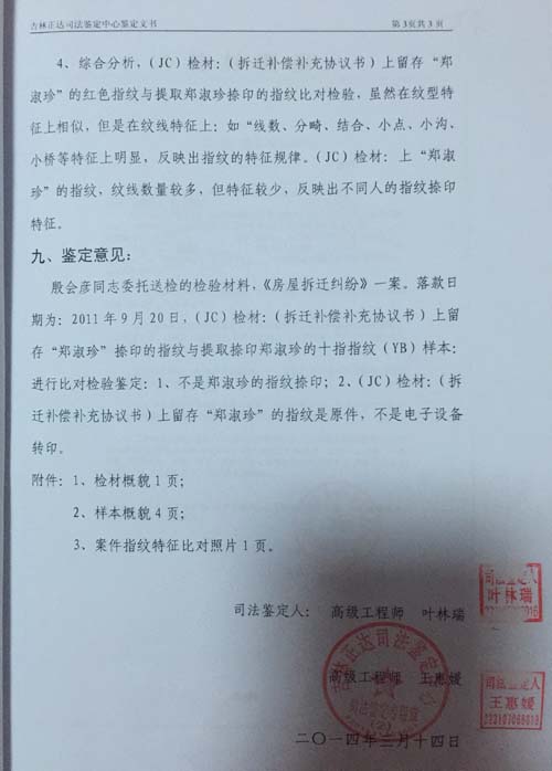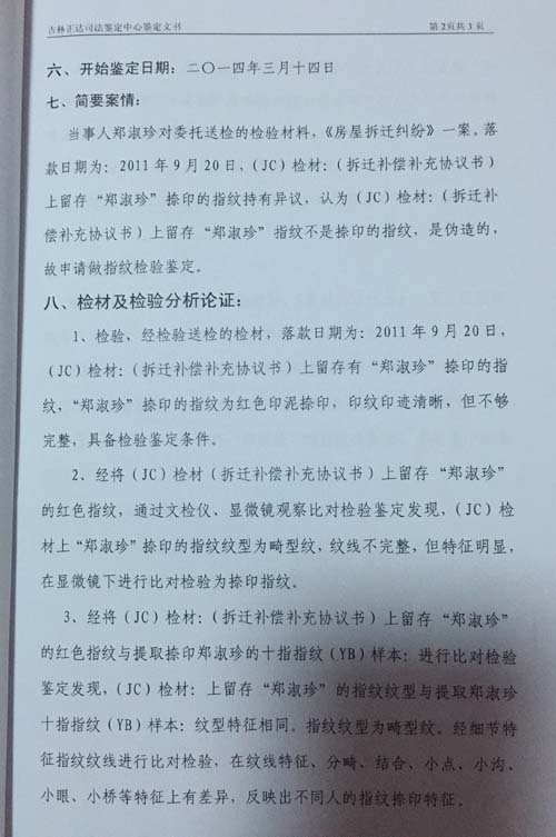 经具有鉴定主体资格的鉴定中介机构鉴定,拆迁补偿补充协议上的指纹和 签名均不是郑淑珍所为,协议的真实性存在严重问题。