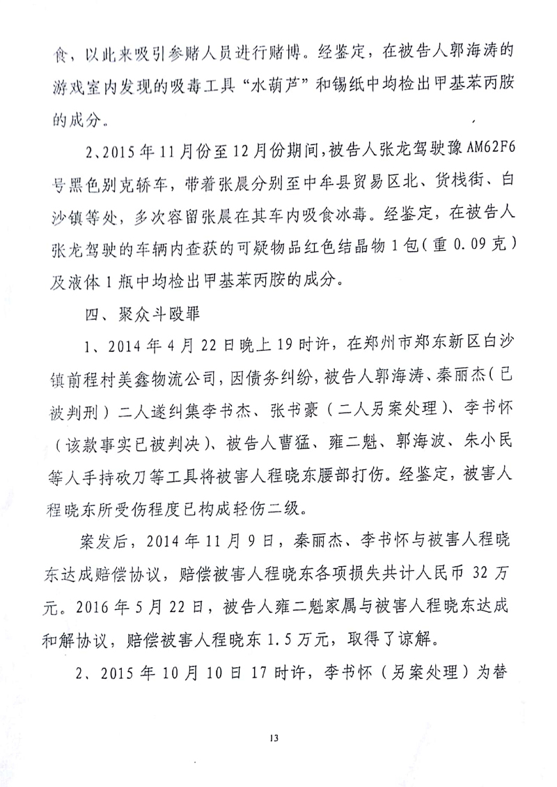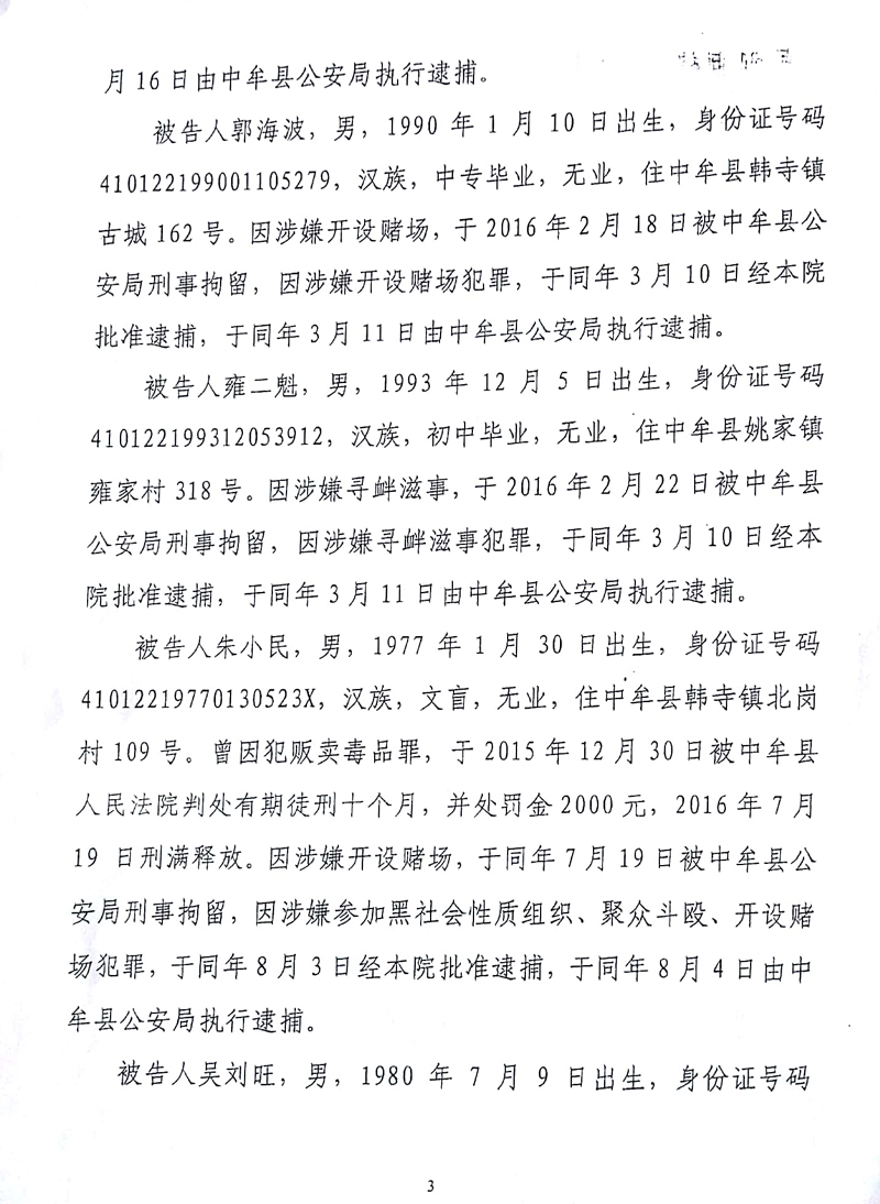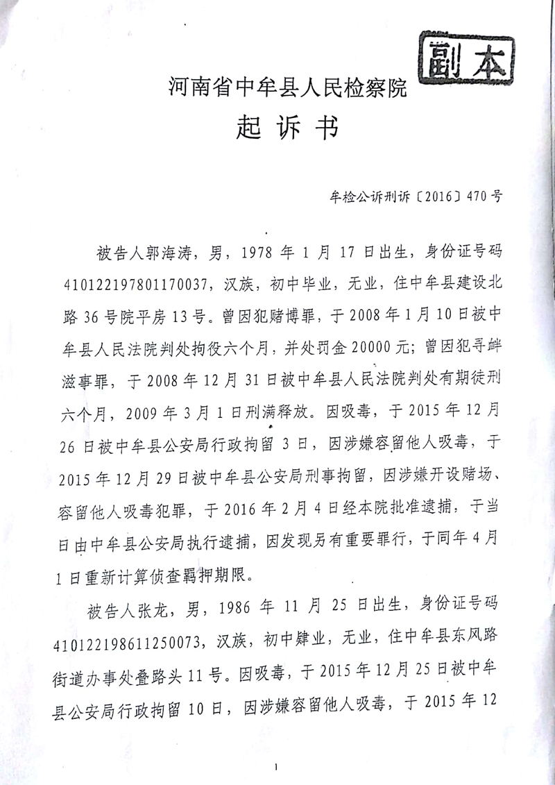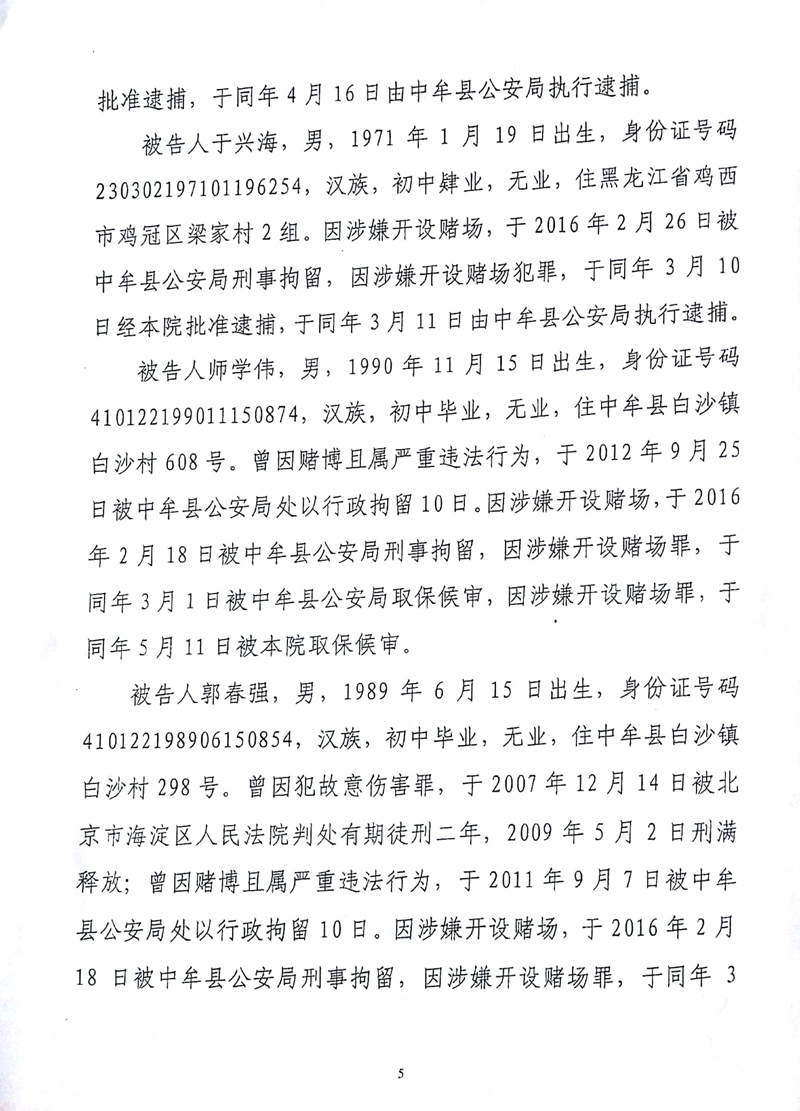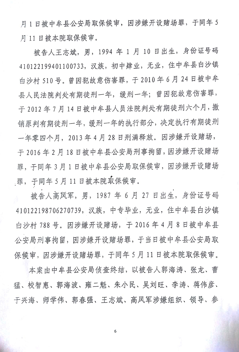 郑州市中牟县人民法院2017年9月7日上午审理本案时,对第一至第五名被告人进行发问时,审判长提示公诉