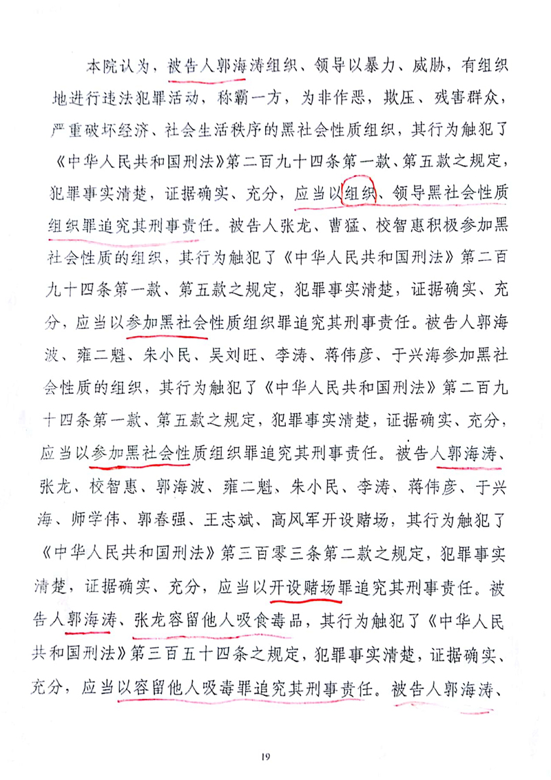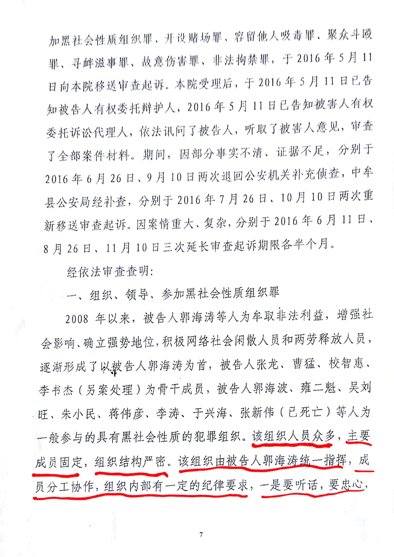 读卷宗材料,发现公诉机关指控郭海涛等犯组织、领导、参与黑社会性质组织罪的事实不存在,没有任何证据加