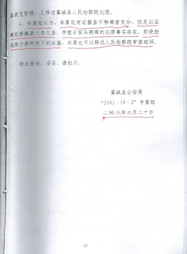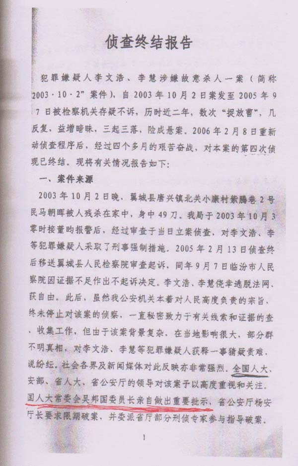 就凭临汾市公安局的这份“结案报告”中“专案组认为,本案现有证据虽然不够