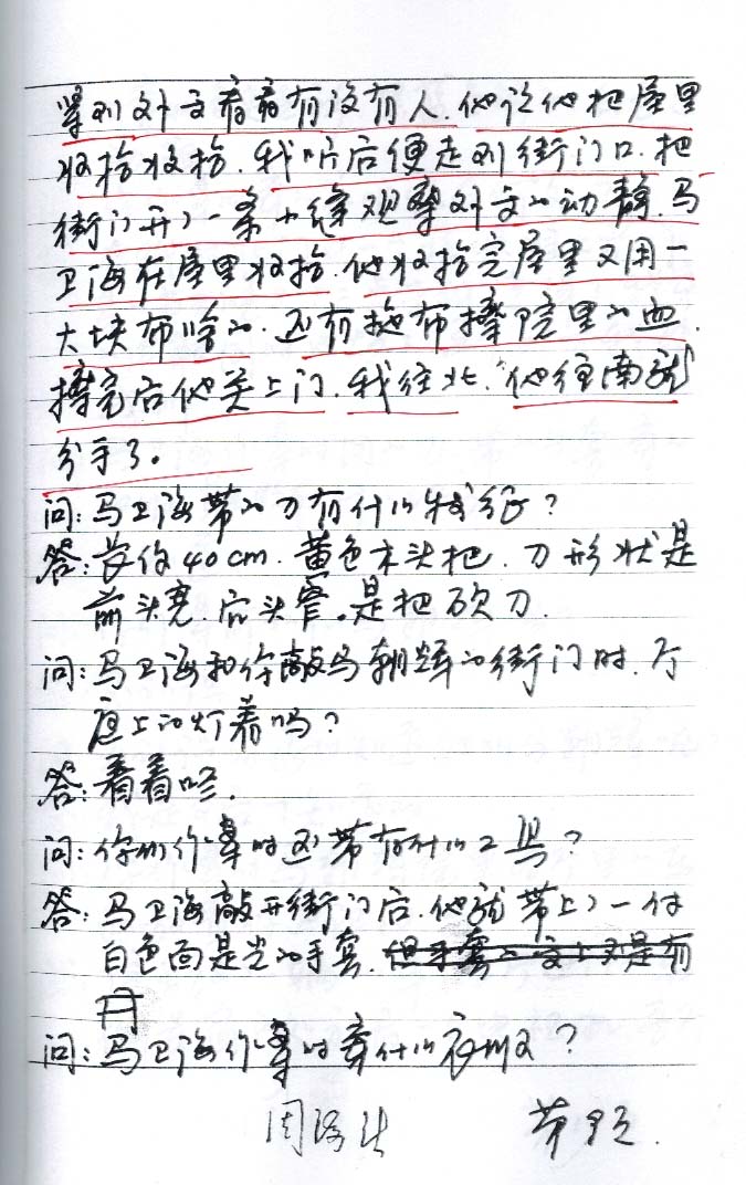 我们核对一下李文浩向公安机关交代三把刀,究竟时哪把刀杀害了马朝晖呢?